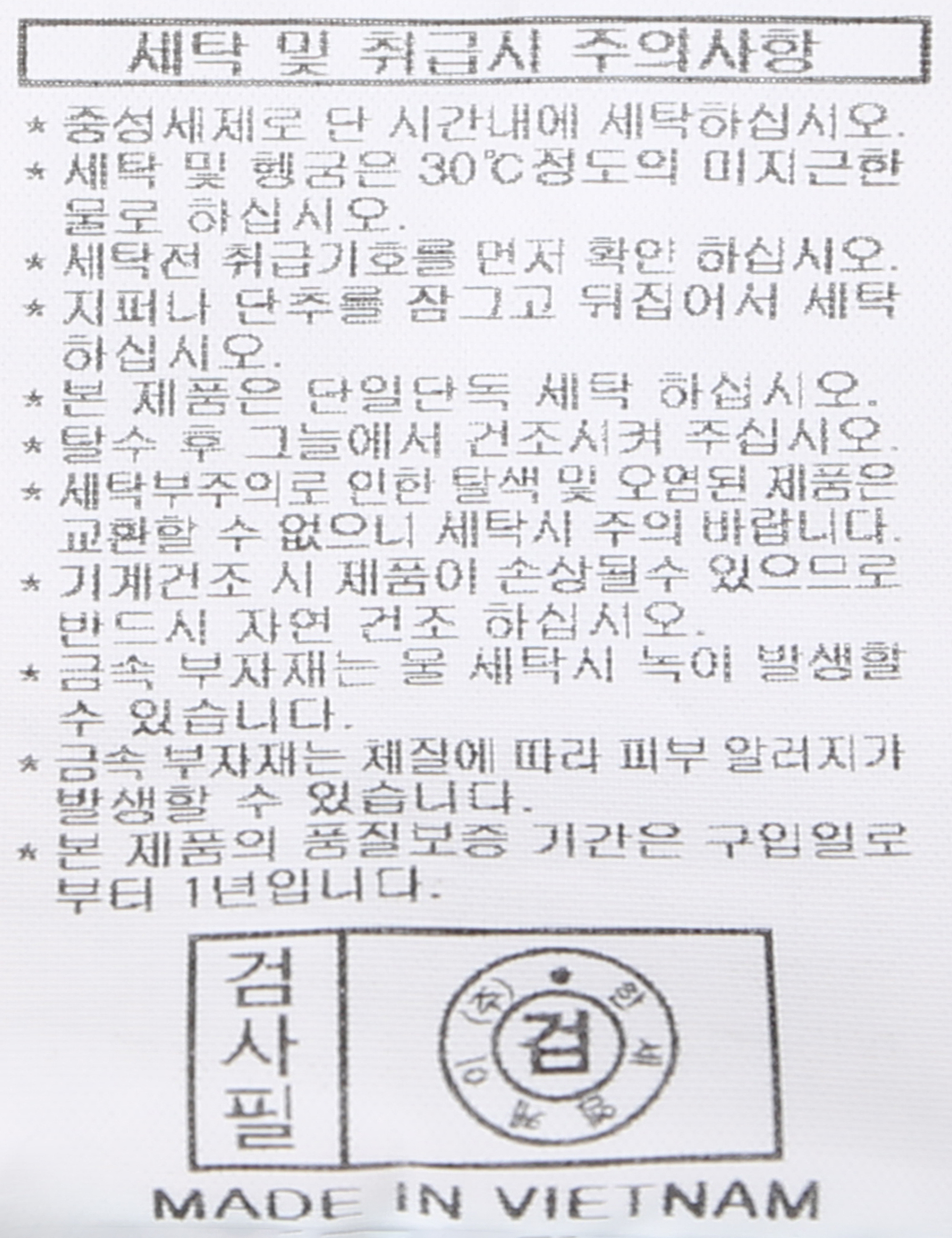 세탁방법 및 취급시 주의사항 본 제품은 손세탁 하십시오.(케어라벨참고)