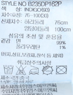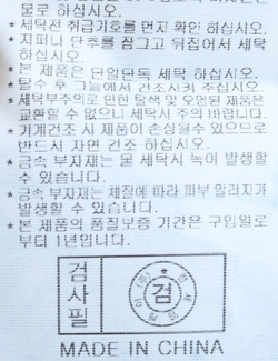 | 세탁방법 및 취급시 주의사항 | 본 제품은 손세탁 하십시오.(케어라벨참고) |