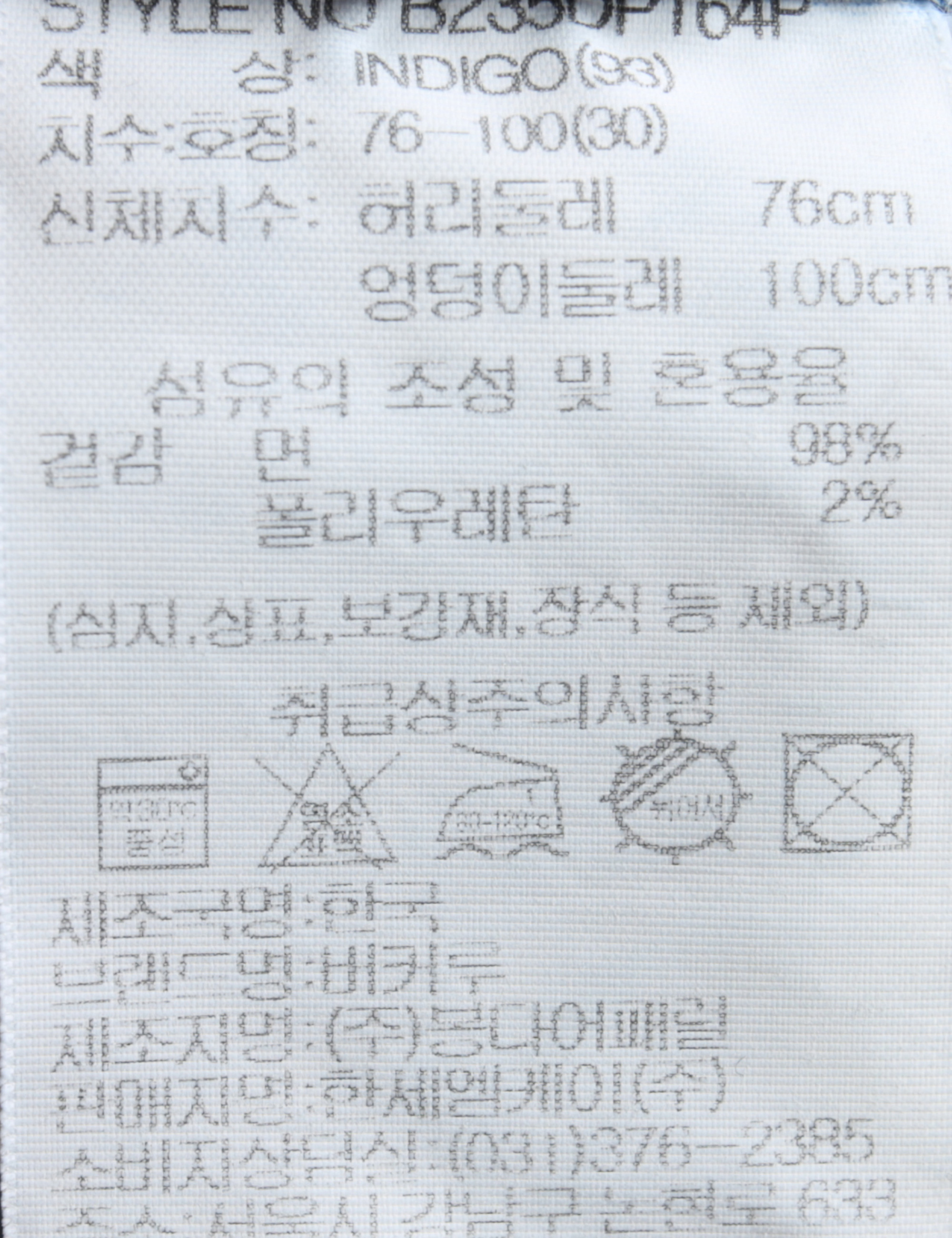 | 상품명 | 남성 테이퍼드 슬림 인디고 데님팬츠(B235DP164P) |
