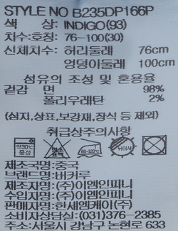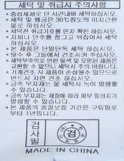 세탁방법 및 취급시 주의사항 중성세제로 단 시간내에 세탁하십시오.(케어라벨참고)