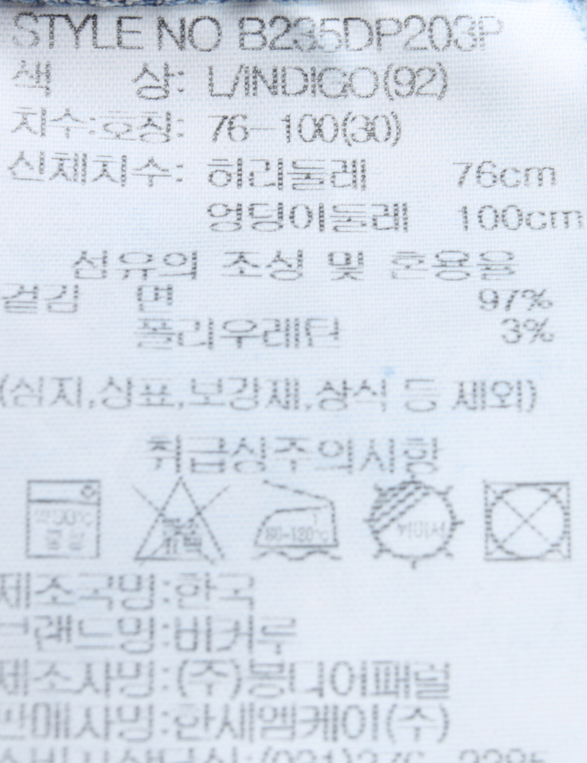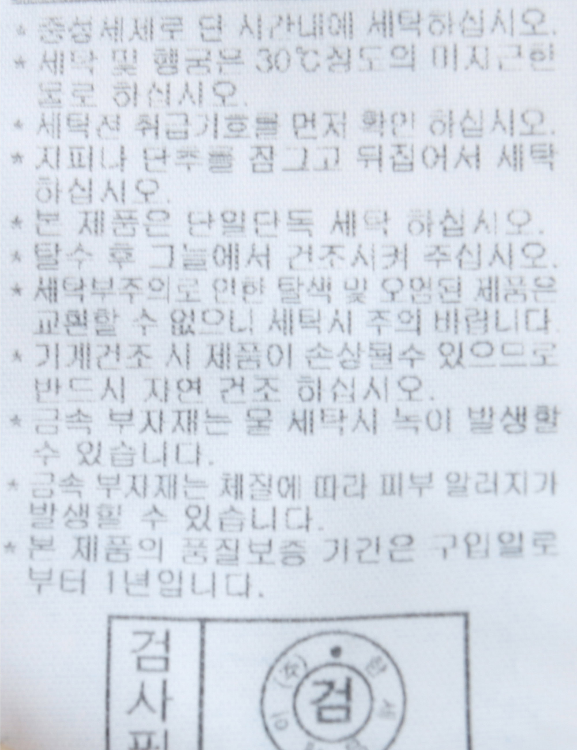 | 세탁방법 및 취급시 주의사항 | 중성세제로 단 시간내에 세탁하십시오.(케어라벨참고) |