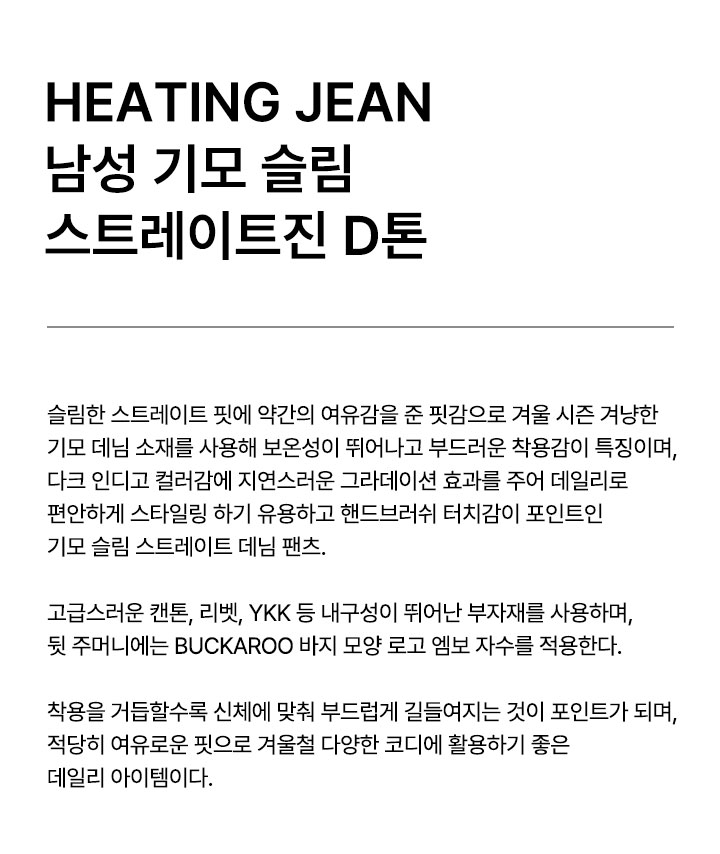 | 상품명 | [HEATING JEAN] 남성 기모 슬림 스트레이트진 D톤(B244DP141P) |