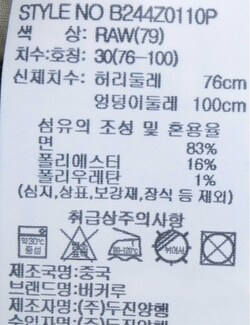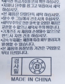 | 세탁방법 및 취급시 주의사항 | 본 제품은 단일단독 세탁하십시오. (세탁라벨참고) |
