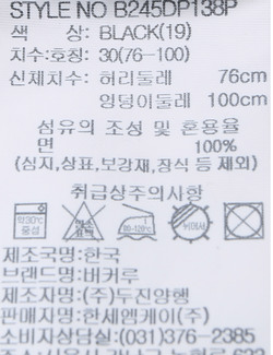 | 상품명 | 남성 스트레이트 구제 M/BK톤(B245DP138P) |