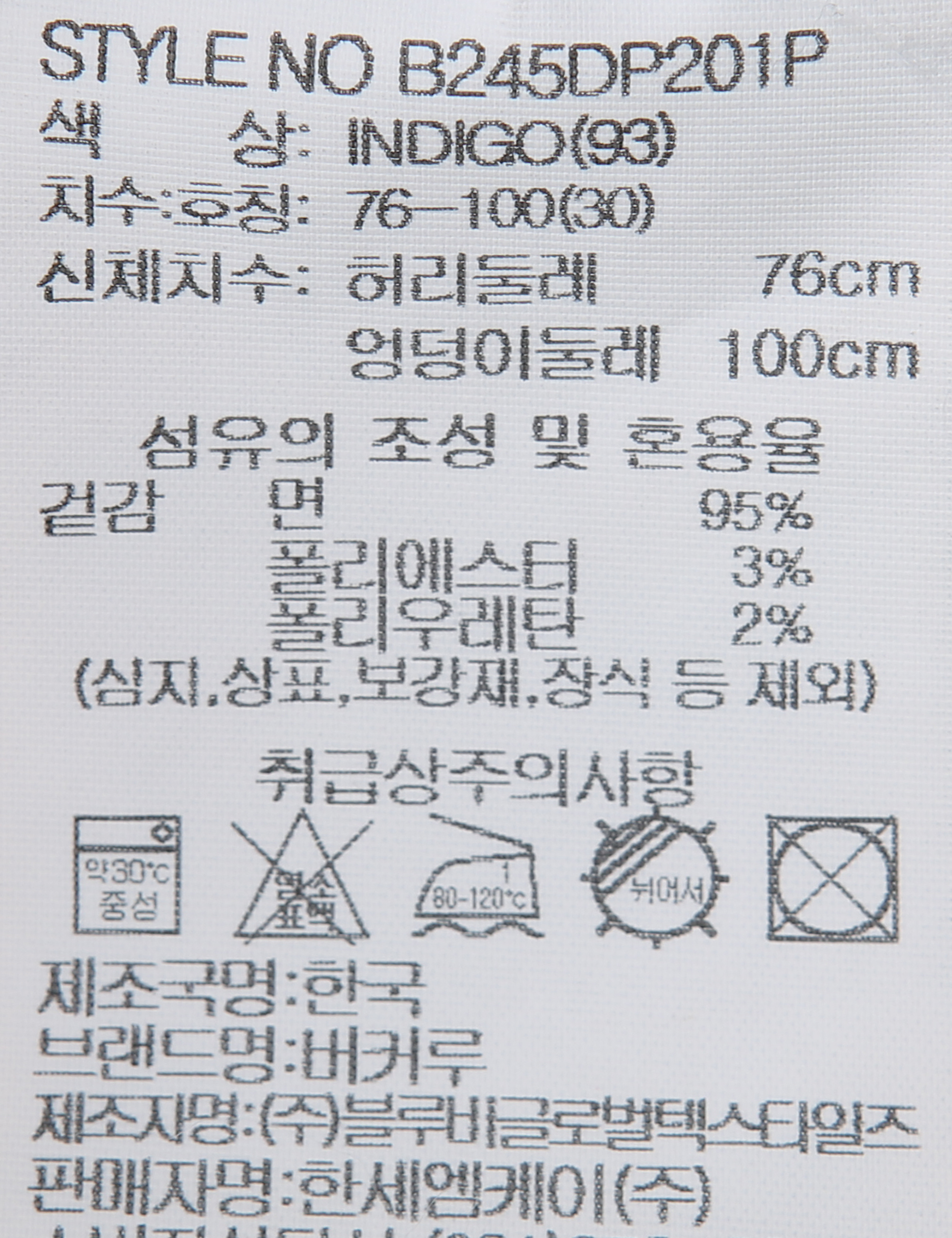 | 상품명 | 슬림배기 데님 팬츠(B245DP201P) |