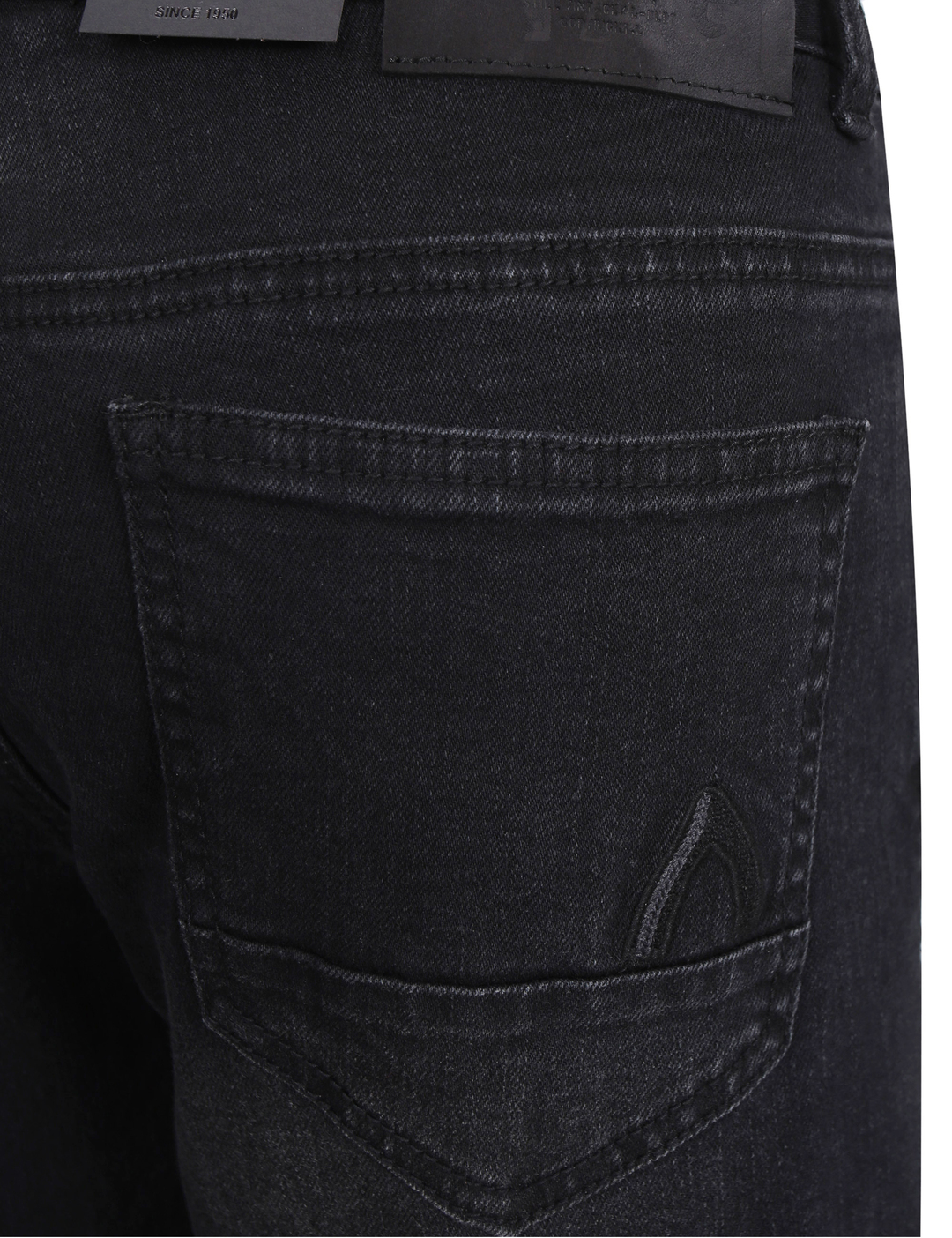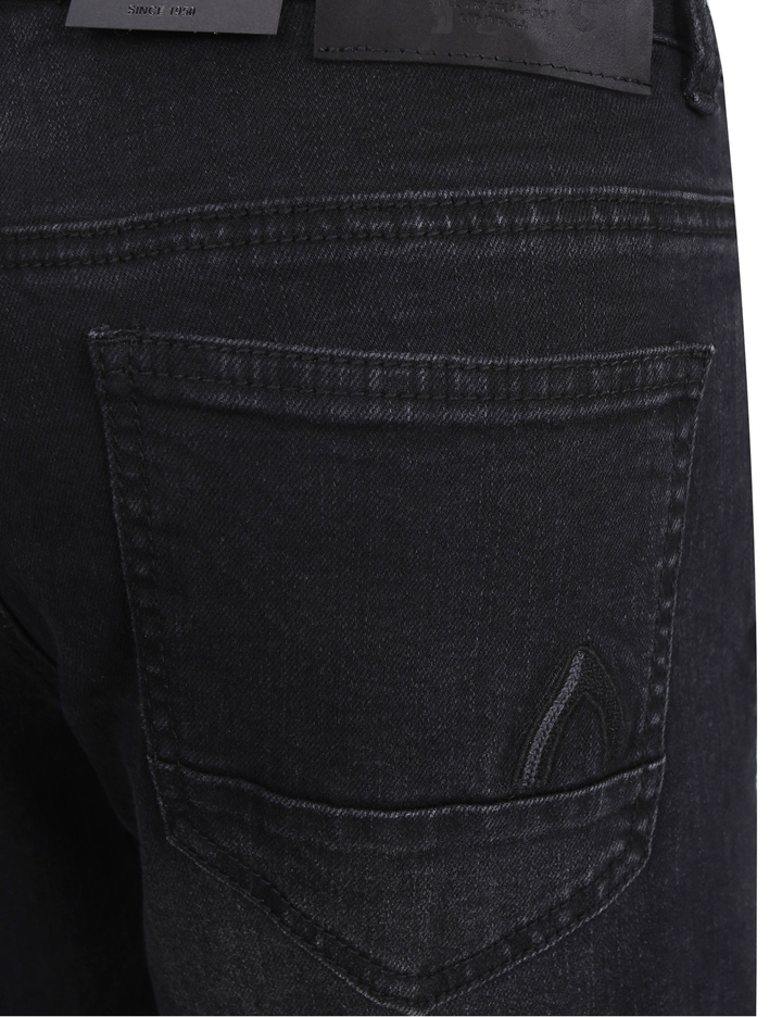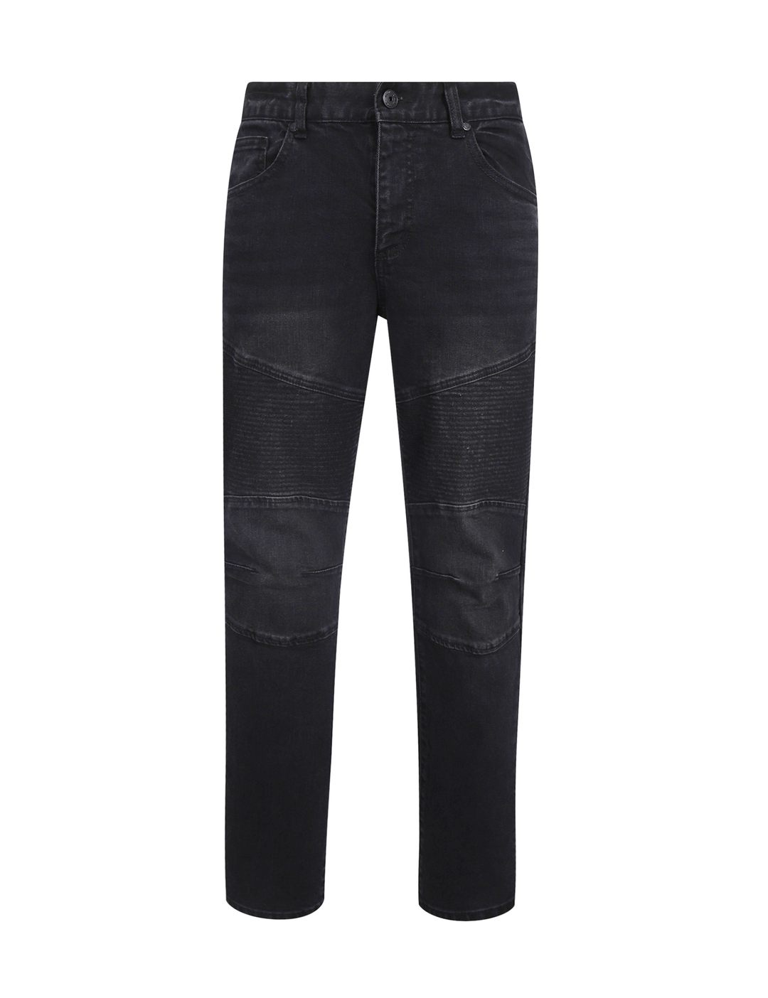 입체적인 절개 디자인과 심플한 스티치디테일의 바이커 데님 팬츠로