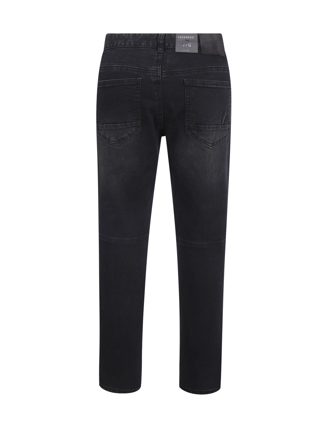 빈티지스러우며 깊이감 있는 칼라감을 표현한 데님 바이커 팬츠.