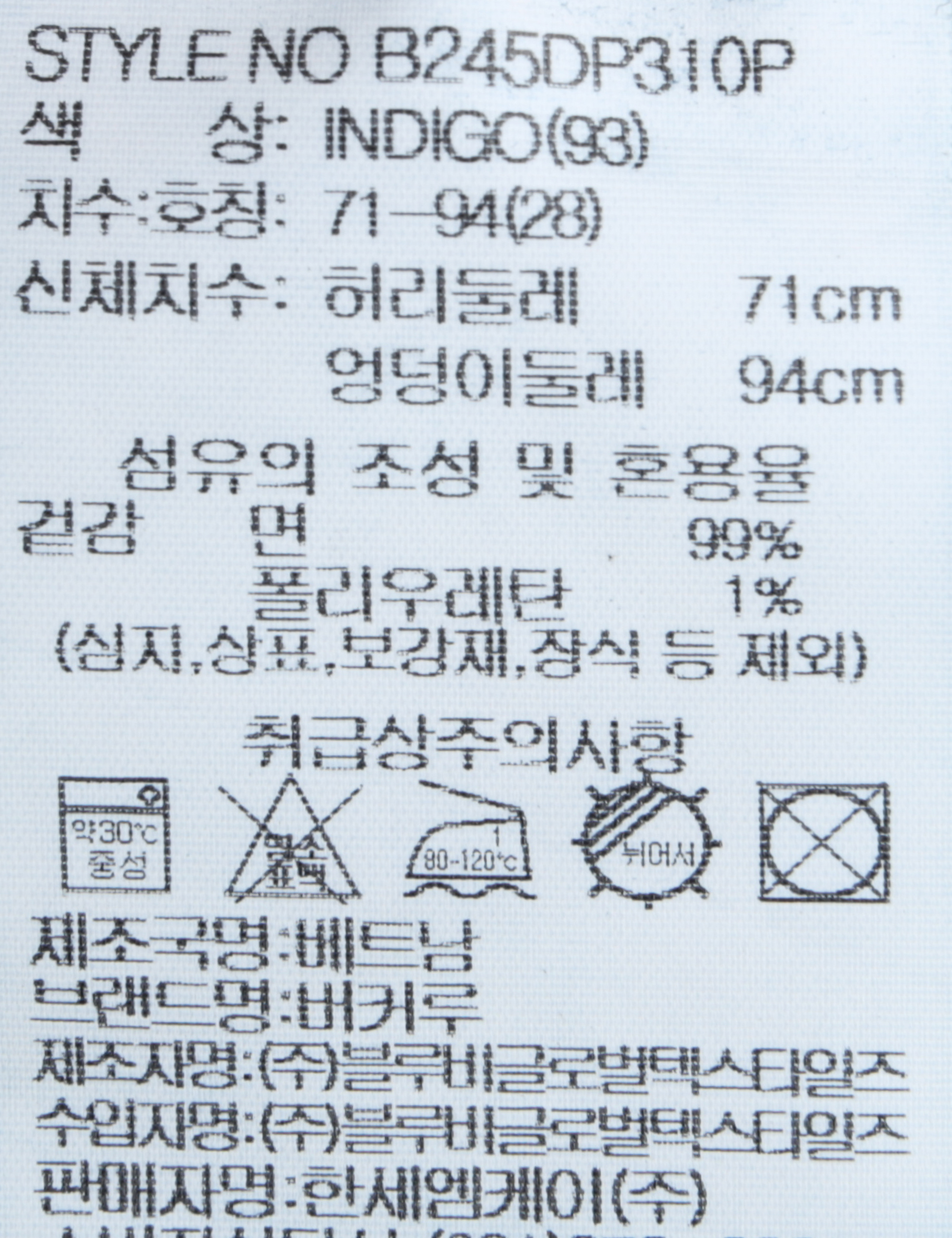 상품명 크롭 테이퍼드 데님팬츠 (B245DP310P)