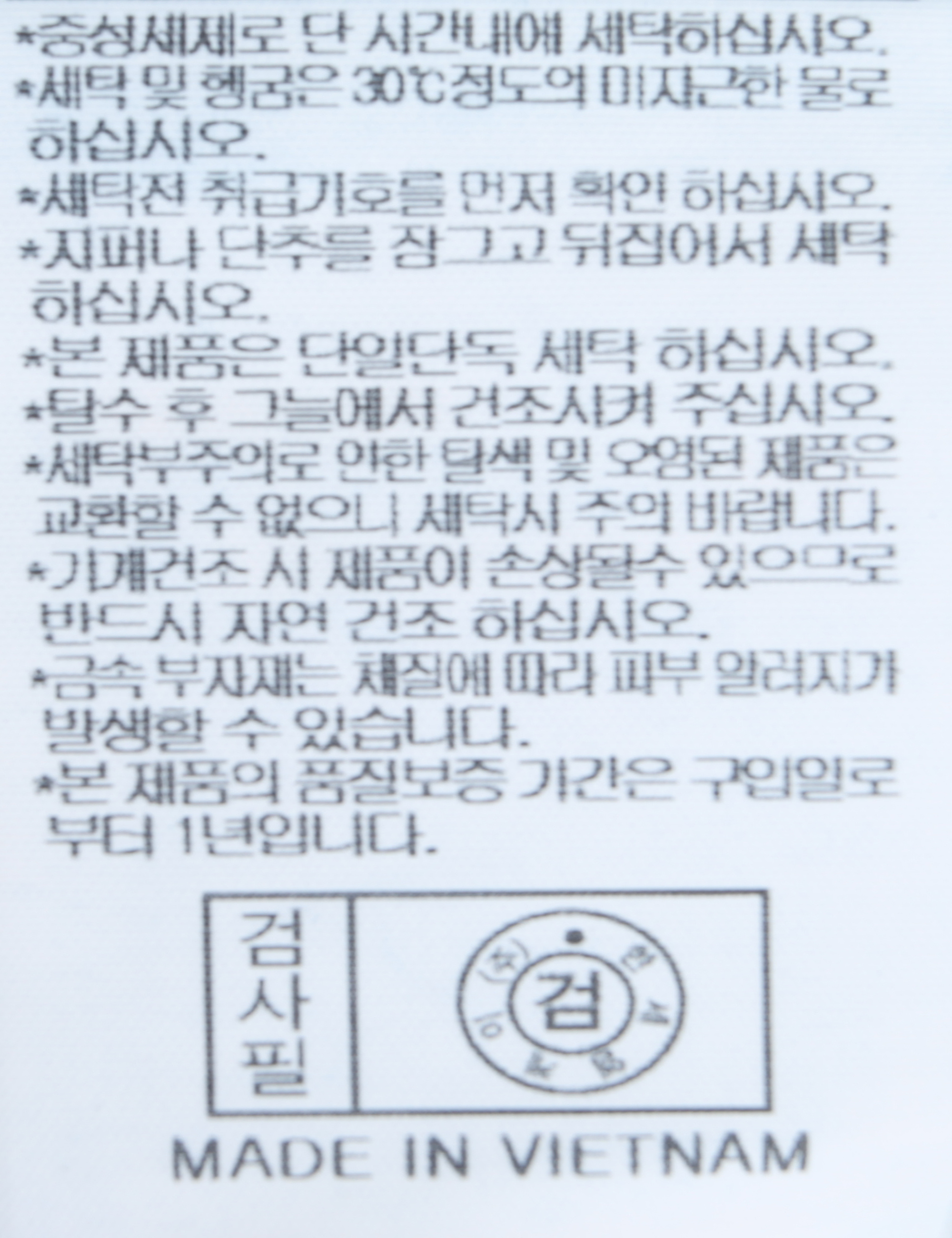 세탁방법 및 취급시 주의사항 중성세제로 단 시간내에 세탁하십시오.(케어라벨참고)