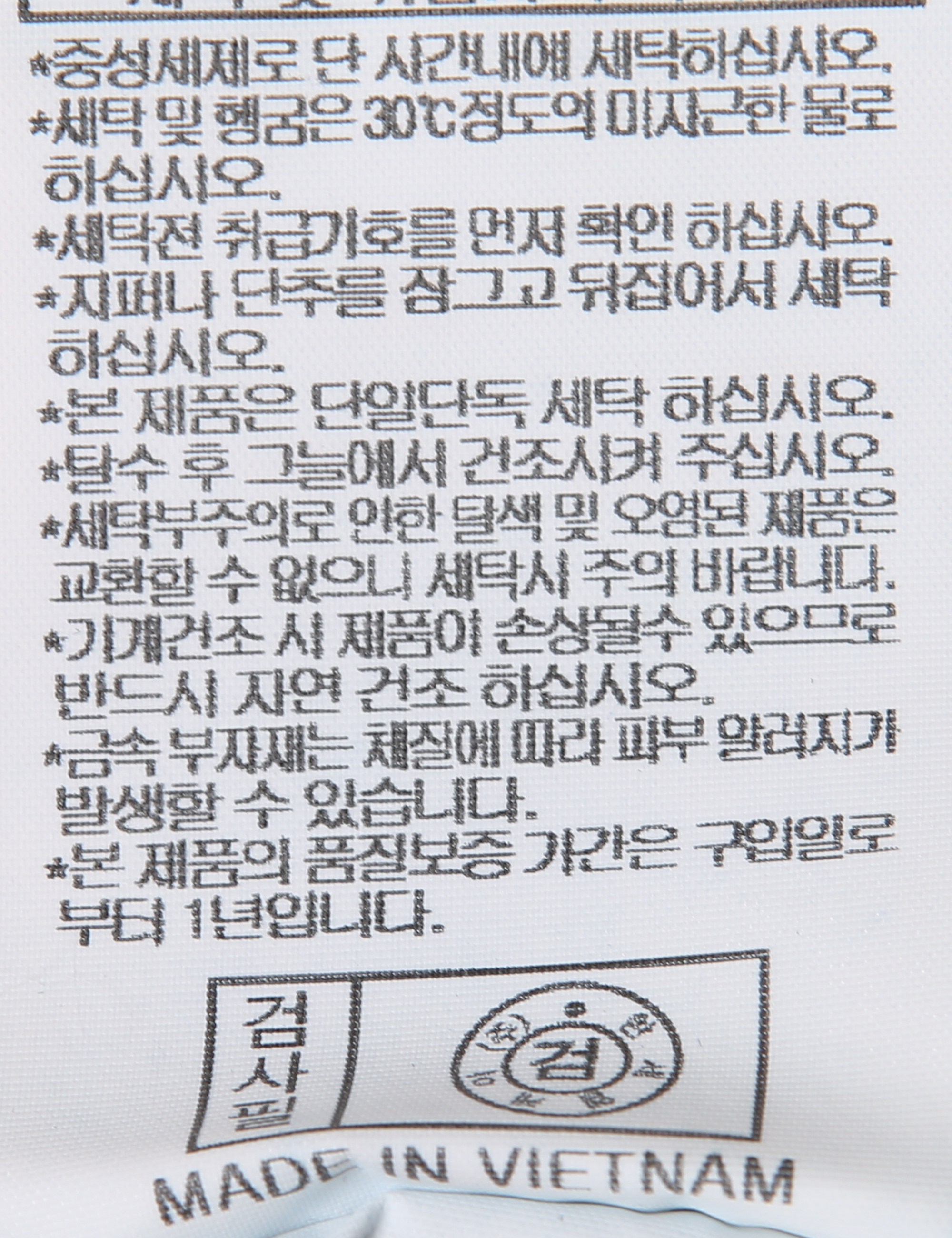 | 세탁방법 및 취급시 주의사항 | 중성세제로 단 시간내에 세탁하십시오.(케어라벨참고) |