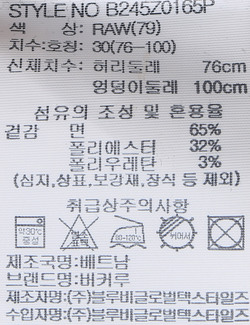 | 상품명 | 남성 테이퍼드 슬림 BK/RAW/M톤(B245Z0165P) |
