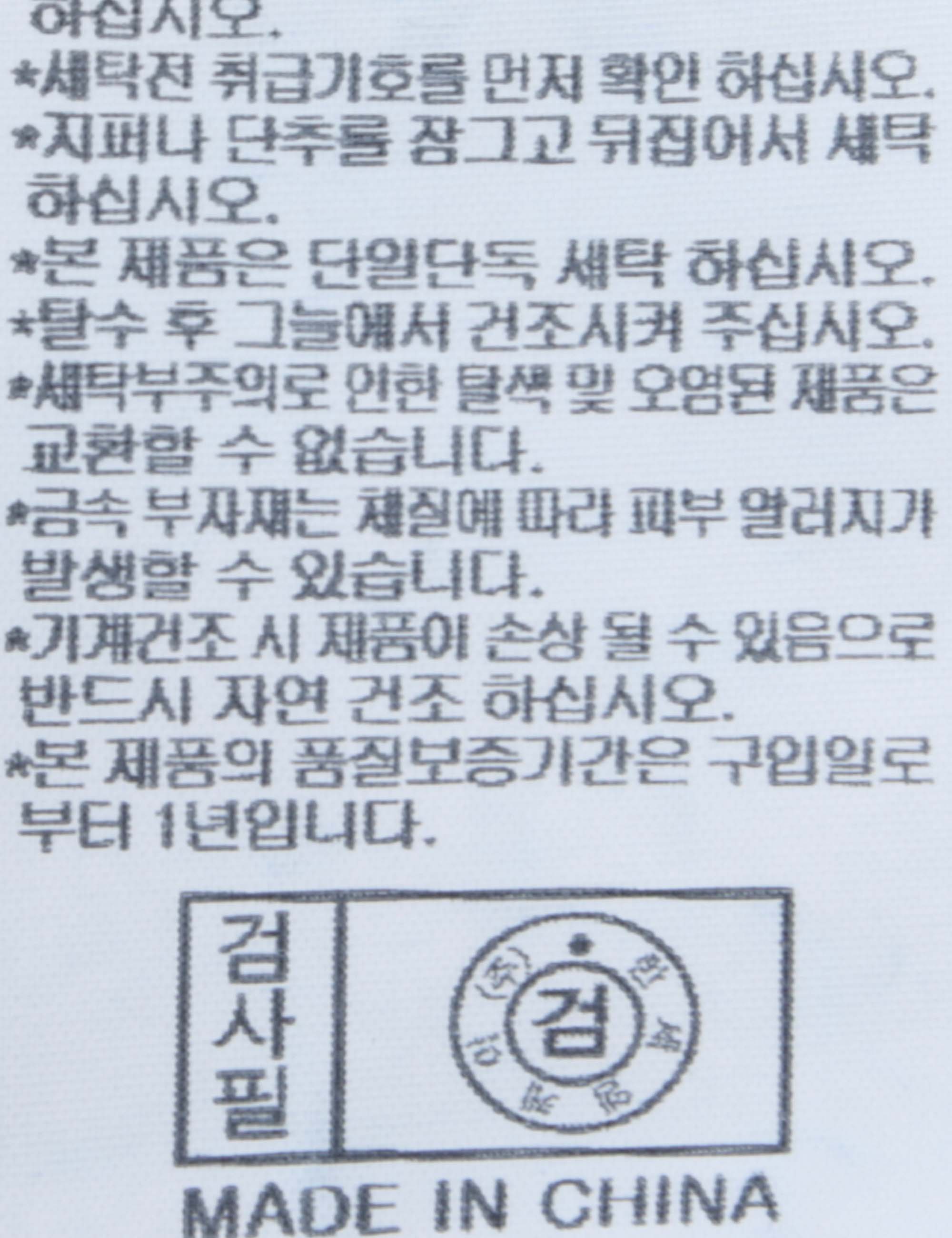 세탁방법 및 취급시 주의사항 본 제품은 손세탁 하십시오.(케어라벨참고)