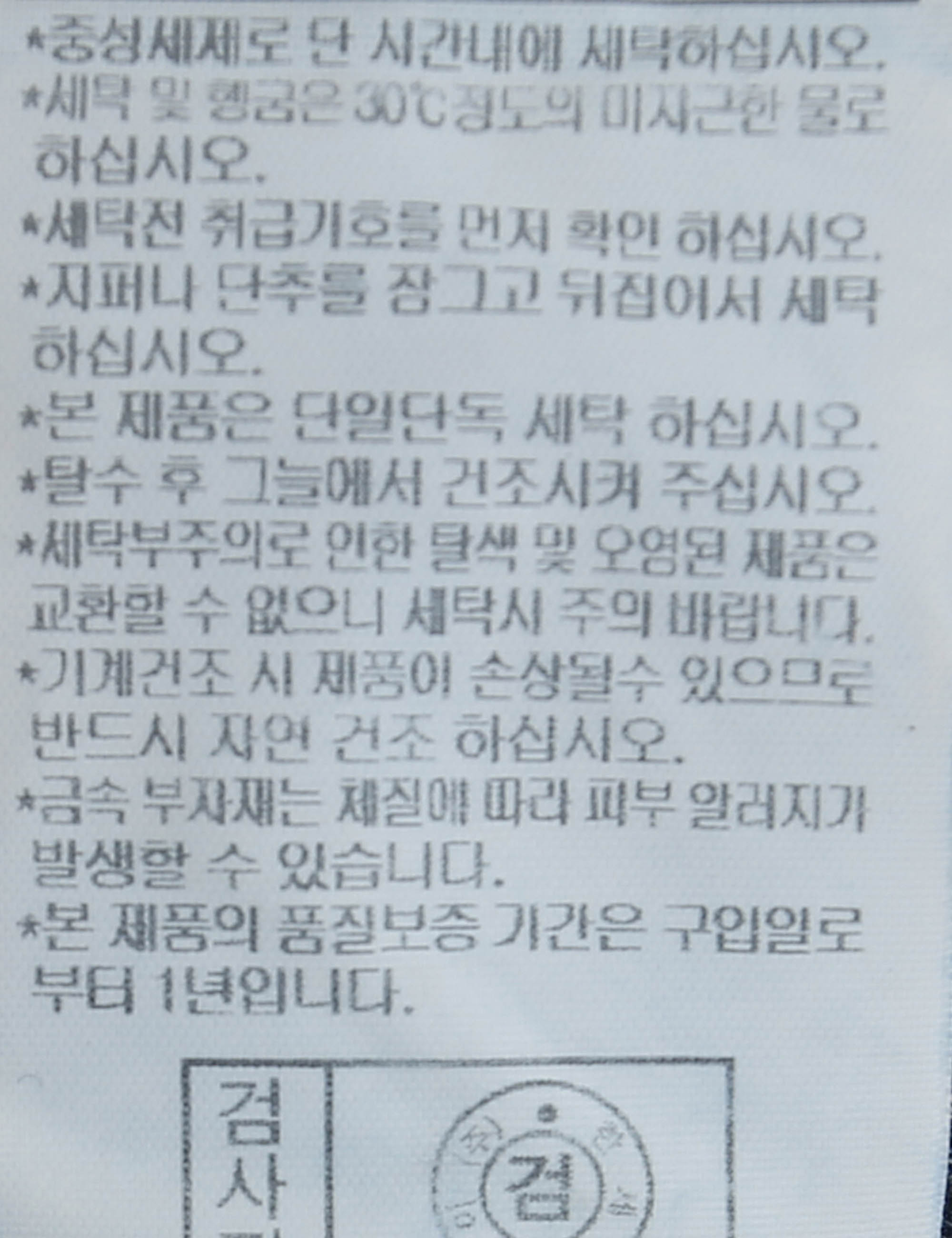| 세탁방법 및 취급시 주의사항 | 중성세제로 단 시간내에 세탁하십시오.(케어라벨참고) |