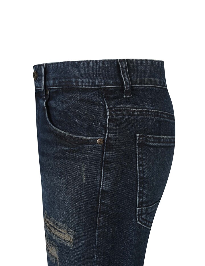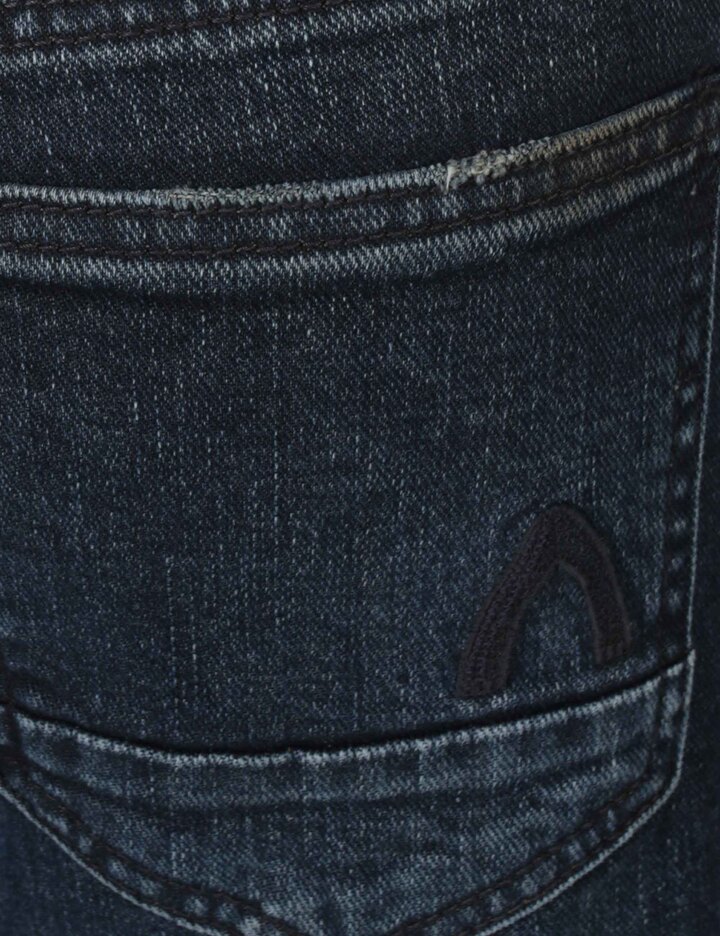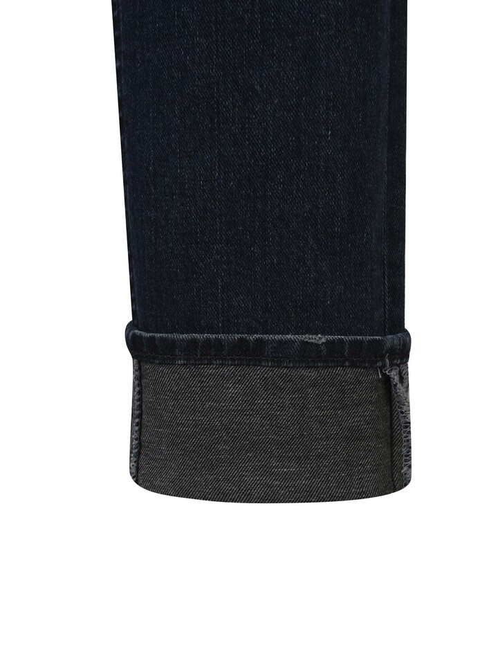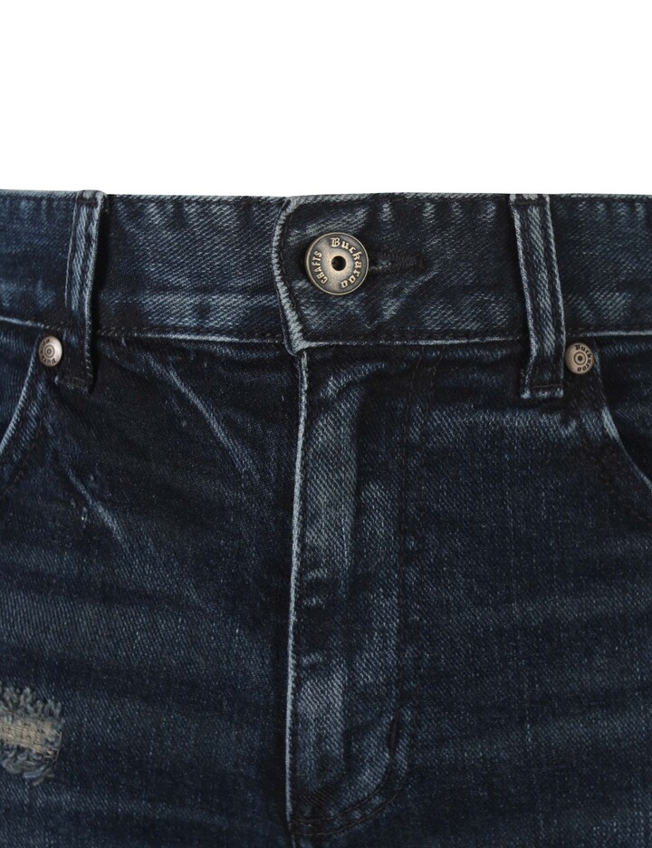 버커루 대표핏인 테이퍼드 슬림 핏으로 한국인 체형에 가장 최적화 되어 제작된 전체적으로 슬림한 핏의 데님팬츠.