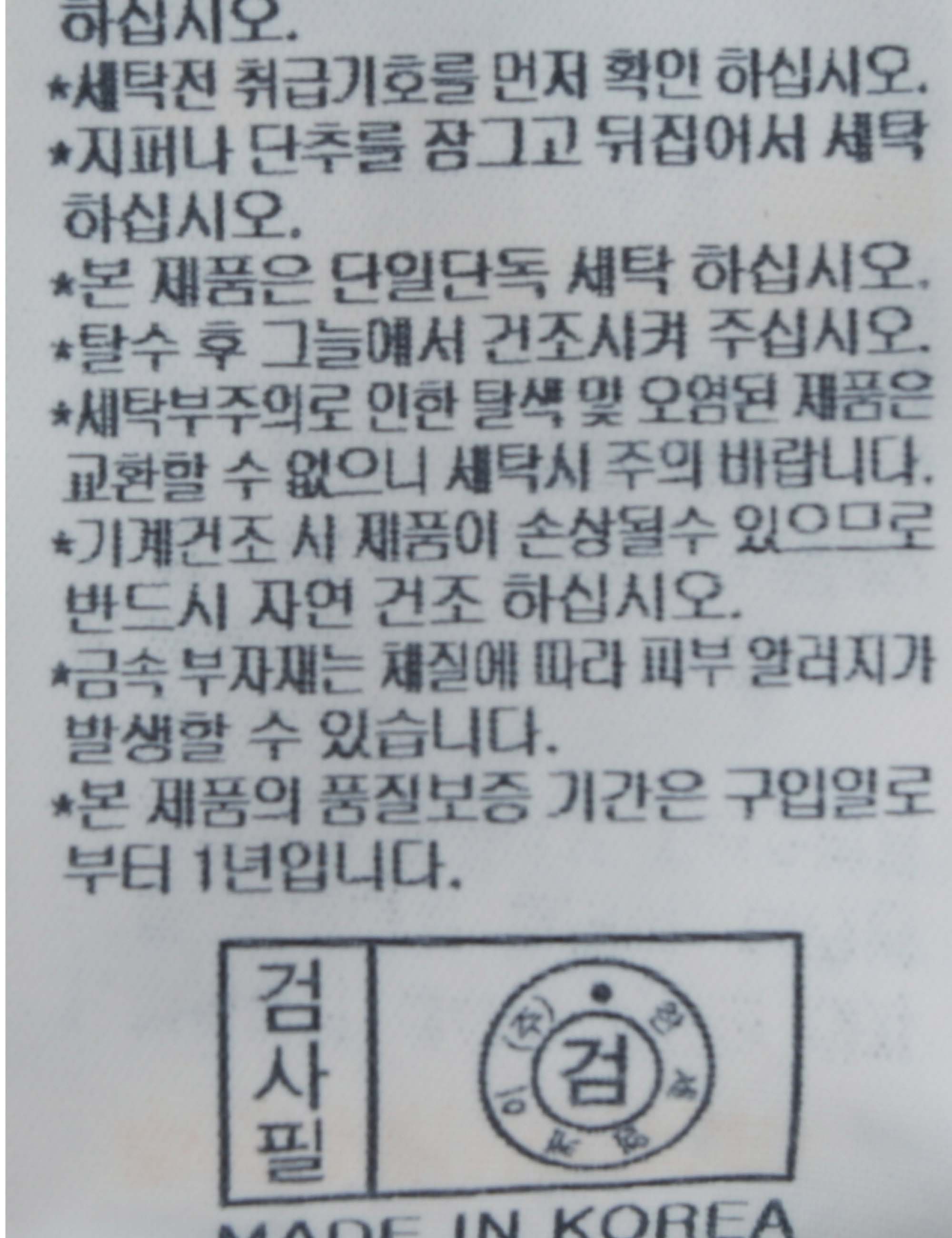 세탁방법 및 취급시 주의사항 중성세제로 단 시간내에 세탁하십시오.(케어라벨참고)