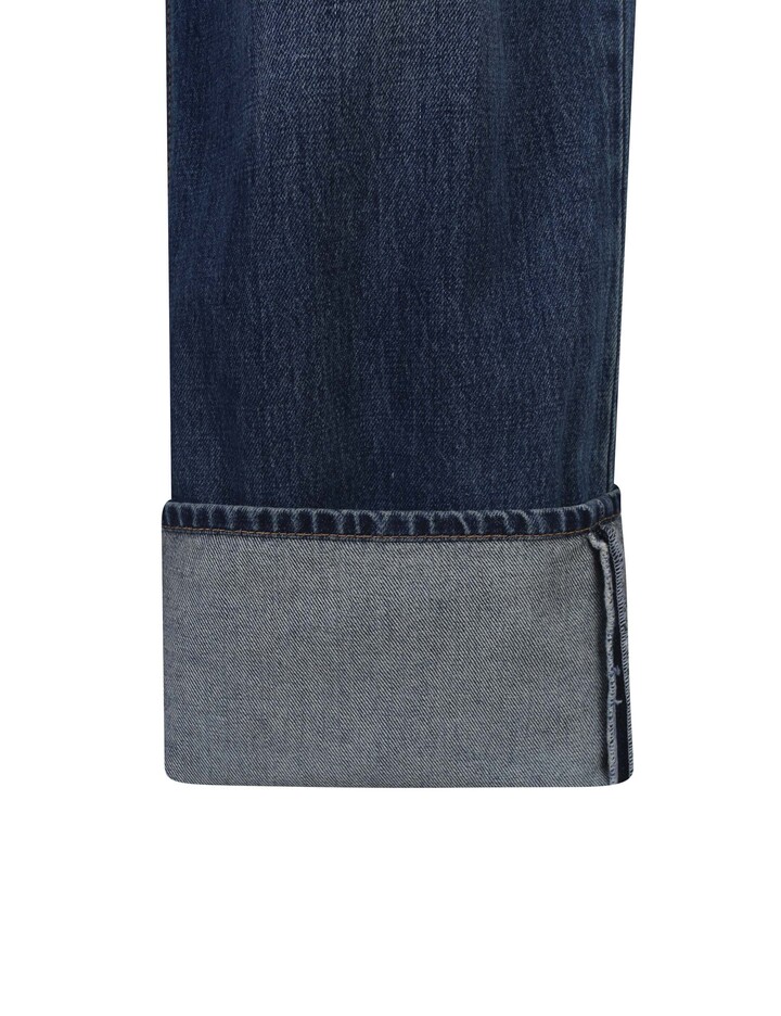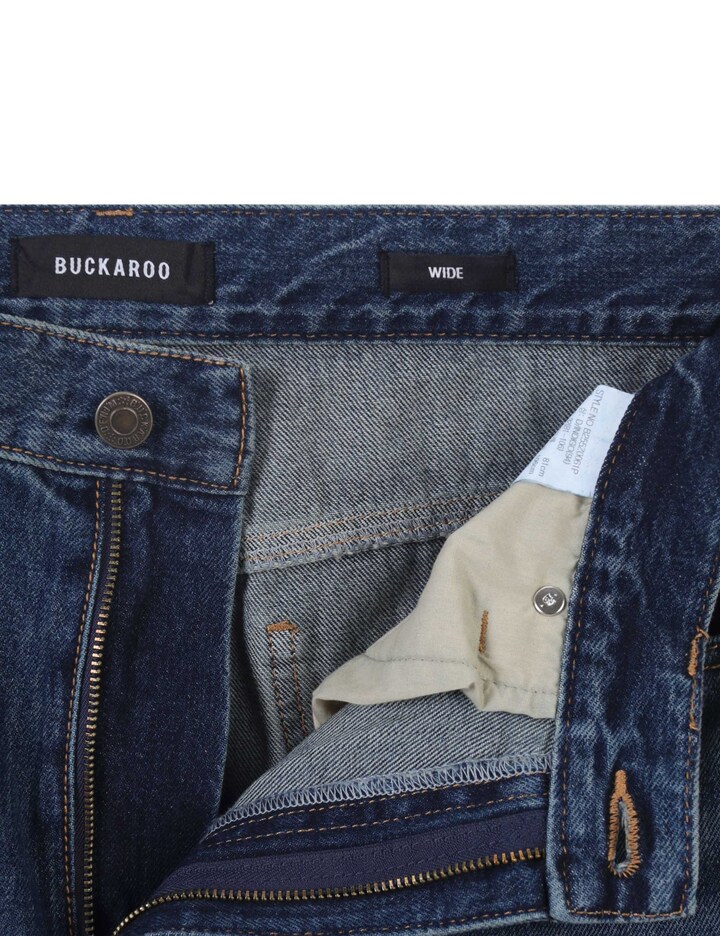 *루즈한 기장감에 트렌디한 와이드 핏의 데님팬츠로 인디고,블랙,로우 본연의 칼라감을 살려 캣,브러쉬,스톤워싱 작업 등의 공정으로 빈티지스러우며 깊이감 있는 칼라감을 표현한 데님 와이드 팬츠.