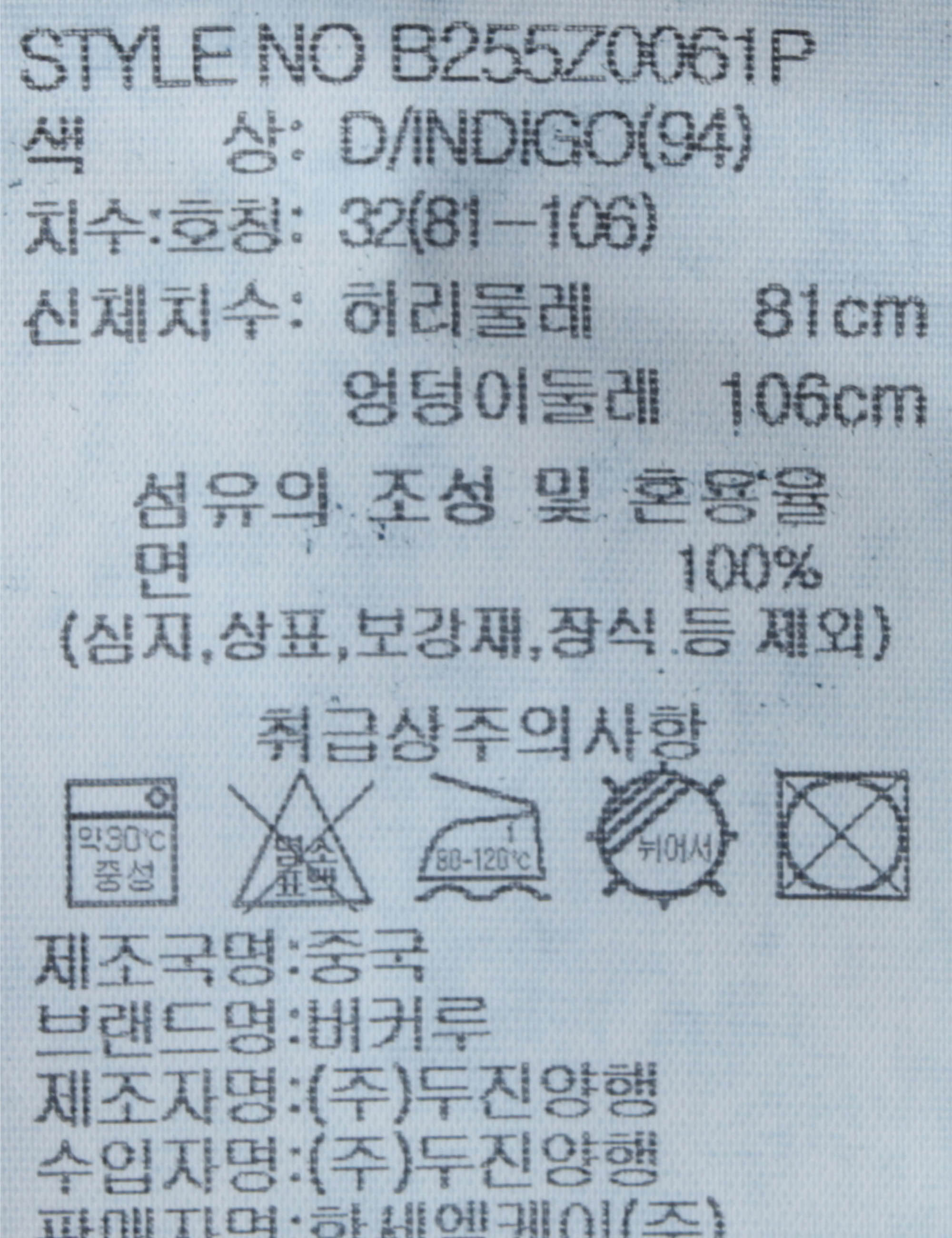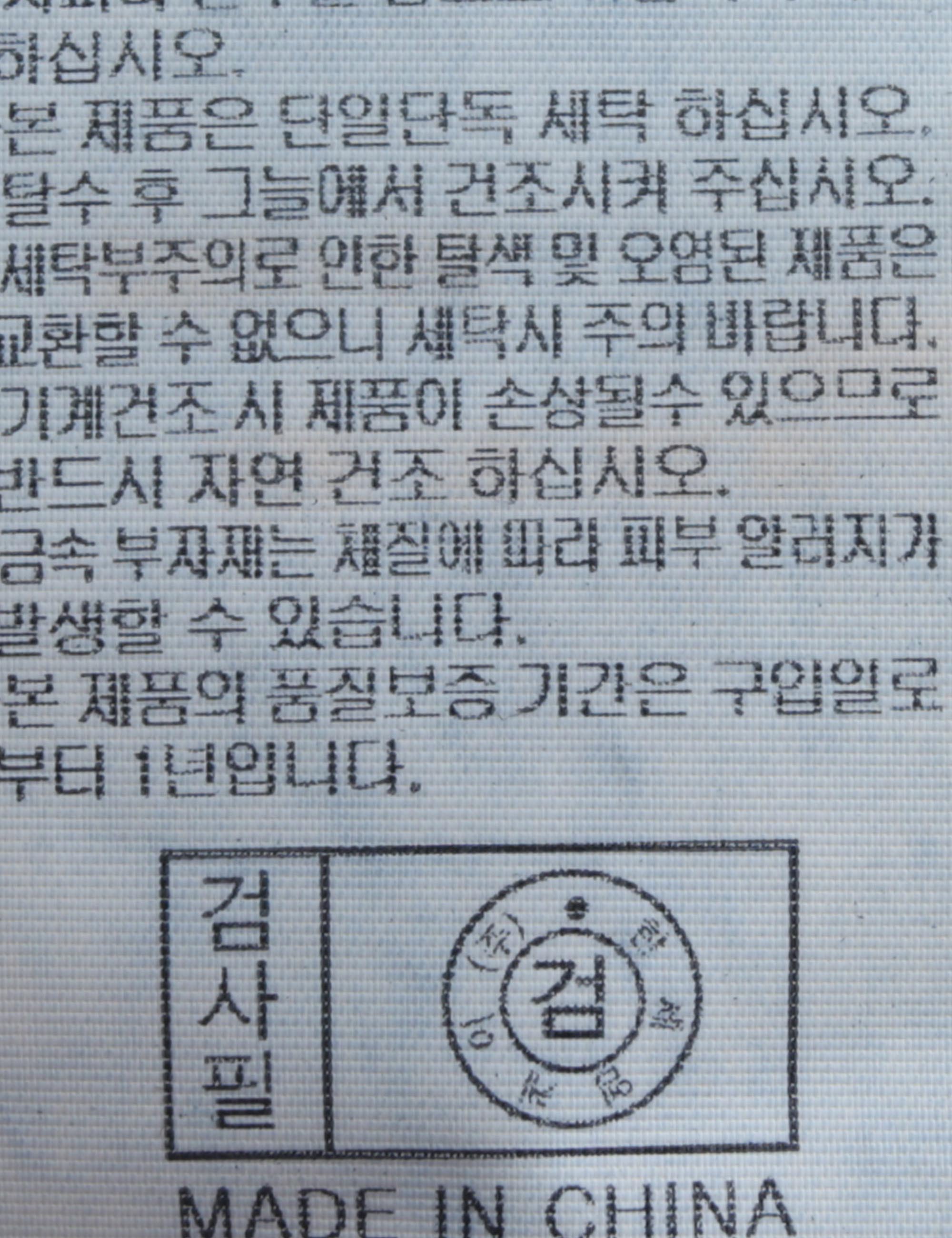 | 세탁방법 및 취급시 주의사항 | 중성세제로 단 시간내에 세탁하십시오.(케어라벨참고) |