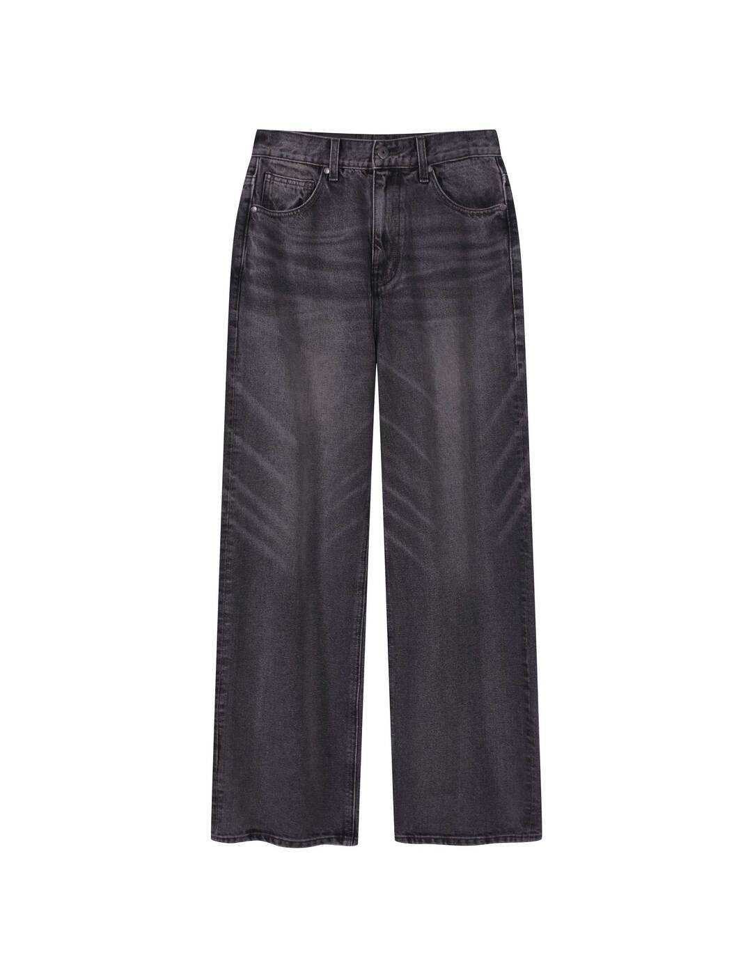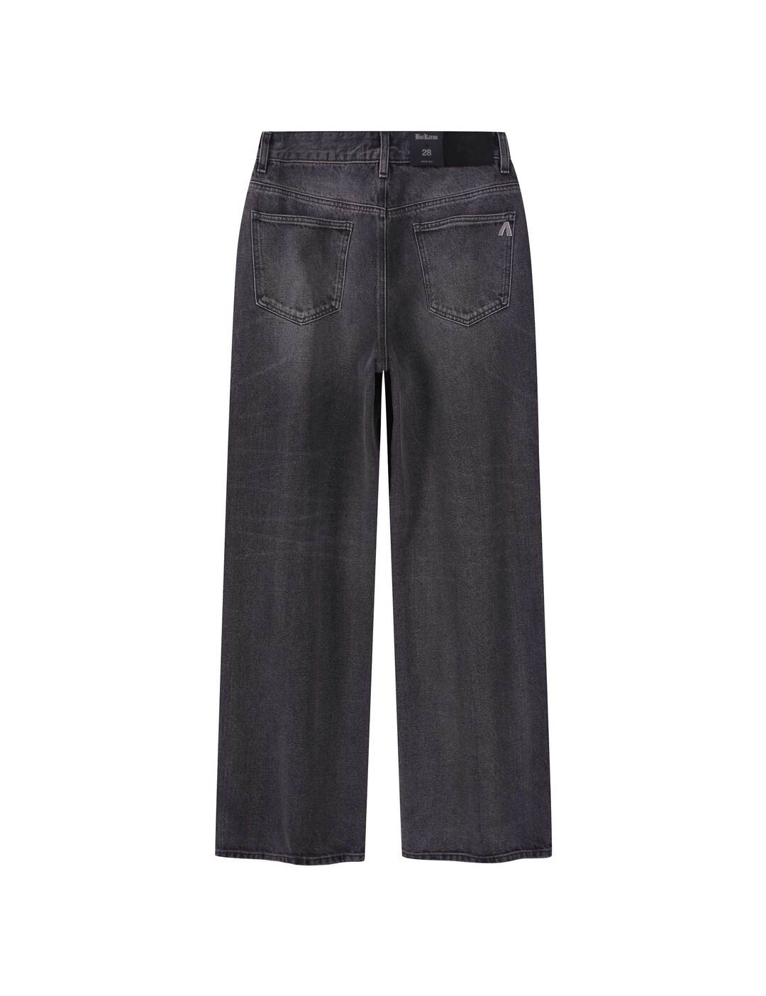 레이저 워싱 디테일로 유니크한 무드를 더한 남성 그레이 와이드 데님 팬츠