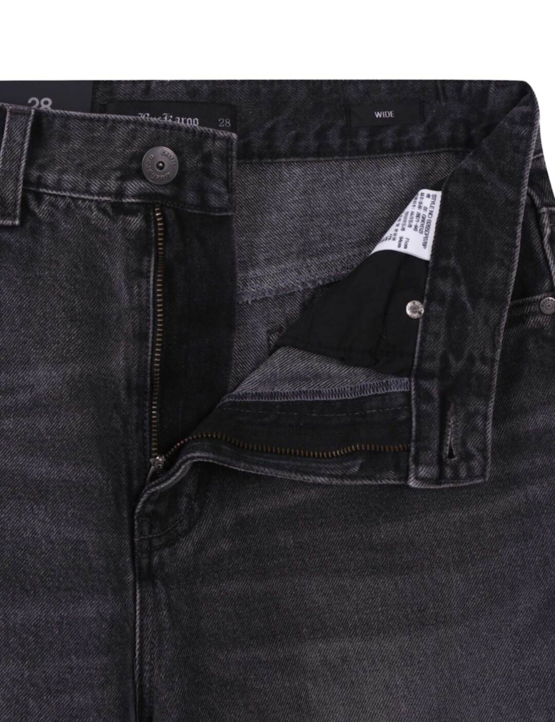 레이저 워싱으로 구현한 차별화된 그레이 컬러감 브러싱 가공으로 깊이 있는 텍스처와 스크래치 디테일 뒷포켓 상단 금속 라벨 및 오비 라벨 포인트 여유 있는 와이드 핏으로 트렌디한 실루엣 편안한 착용감과 안정적인 핏 제공 기계 세탁 가능 (데님용 코스 권장)