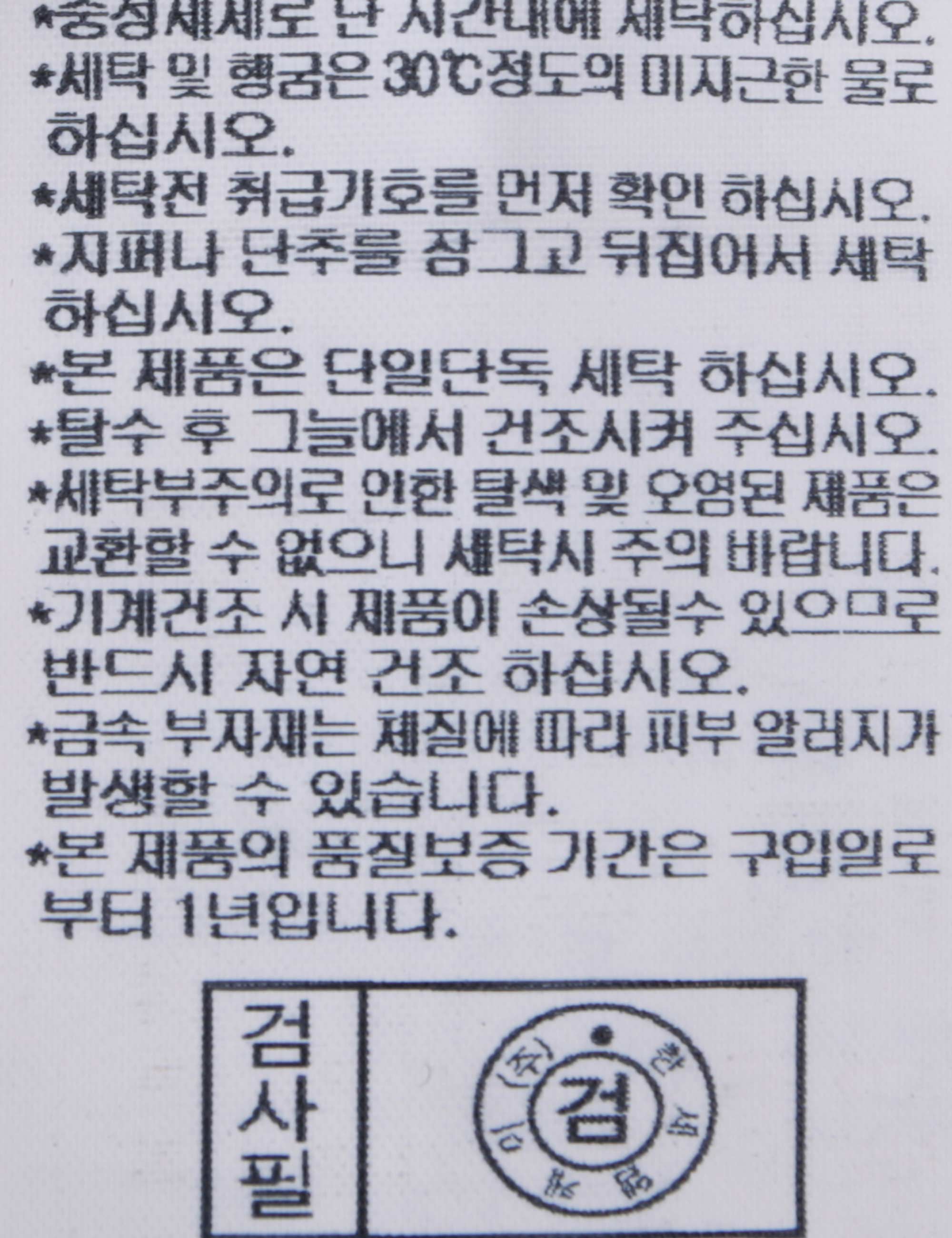 세탁방법 및 취급시 주의사항 중성세제로 단 시간내에 세탁하십시오.(케어라벨참고)