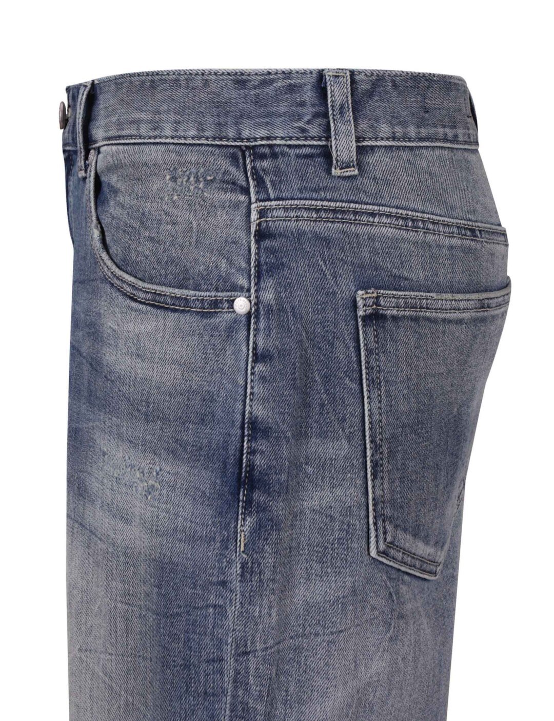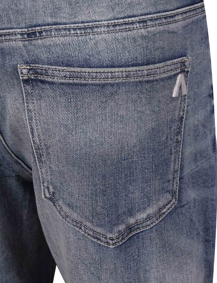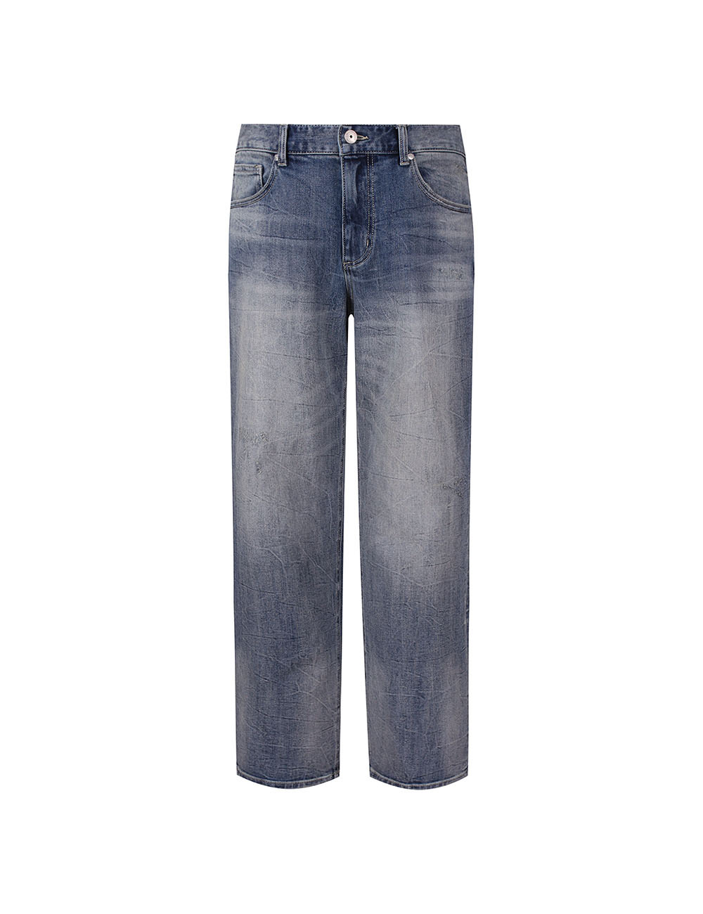 빈티지한 구제 디테일이 포인트가 되는 콘트라스트 워싱의 M톤 스트레이트 데님 팬츠입니다.