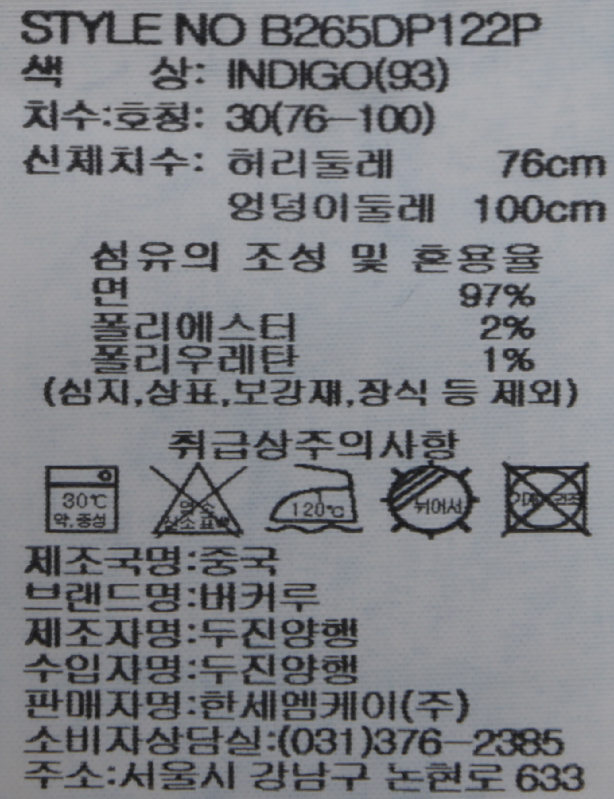 상품명 스트레이트 M톤 데님 팬츠(B265DP122P)