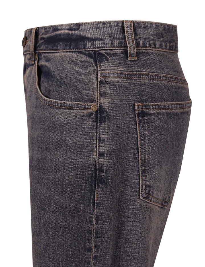 인디고 컬러를 베이스로 브라운 틴 컬러를 입힌 솔트 워싱의 L톤 스트레이트 데님 팬츠입니다.