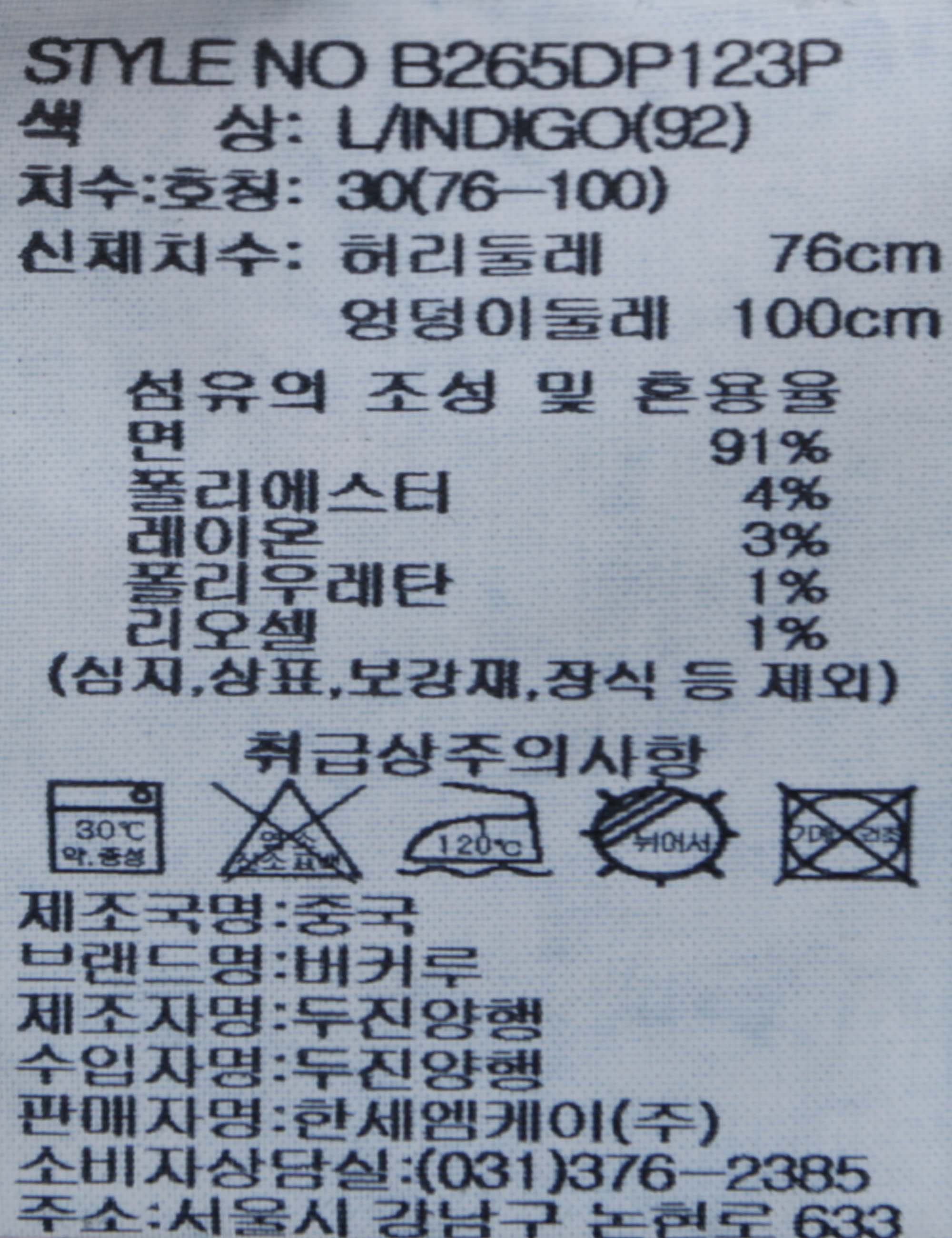 | 상품명 | 스트레이트 L톤 데님 팬츠(B265DP123P) |