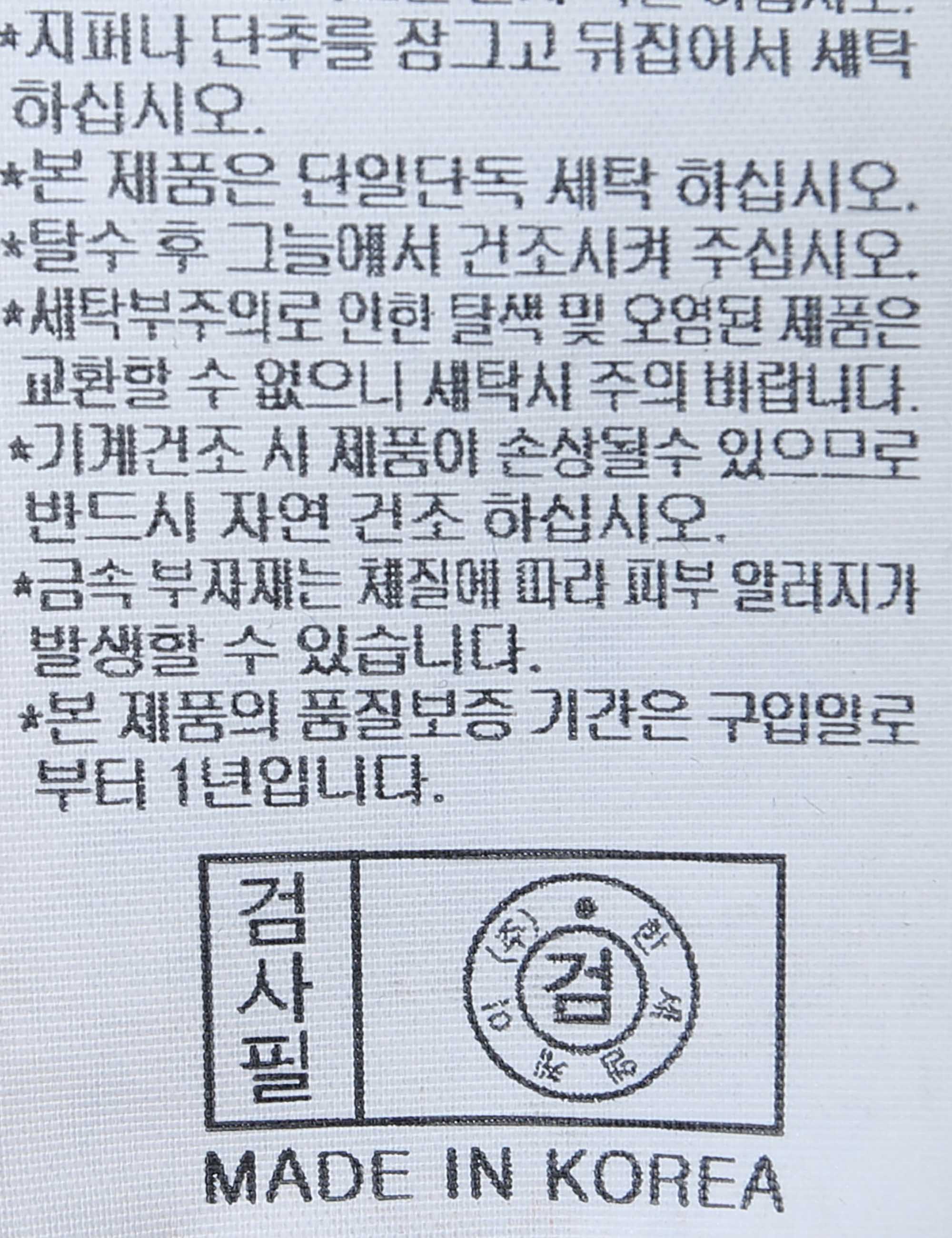 | 세탁방법 및 취급시 주의사항 | 중성세제로 단 시간내에 세탁하십시오.(케어라벨참고) |