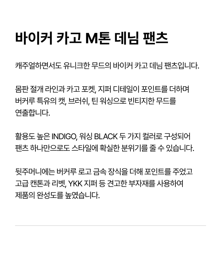 상품명 바이커 카고 M톤 데님 팬츠(B265DP300P)