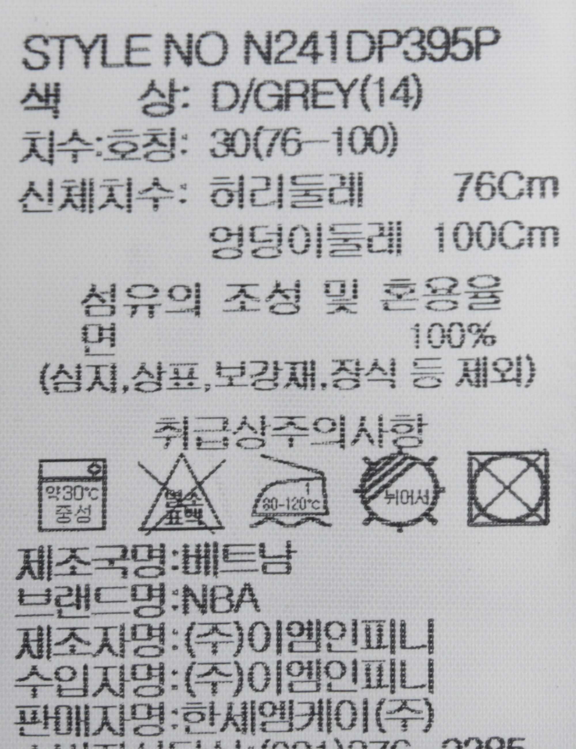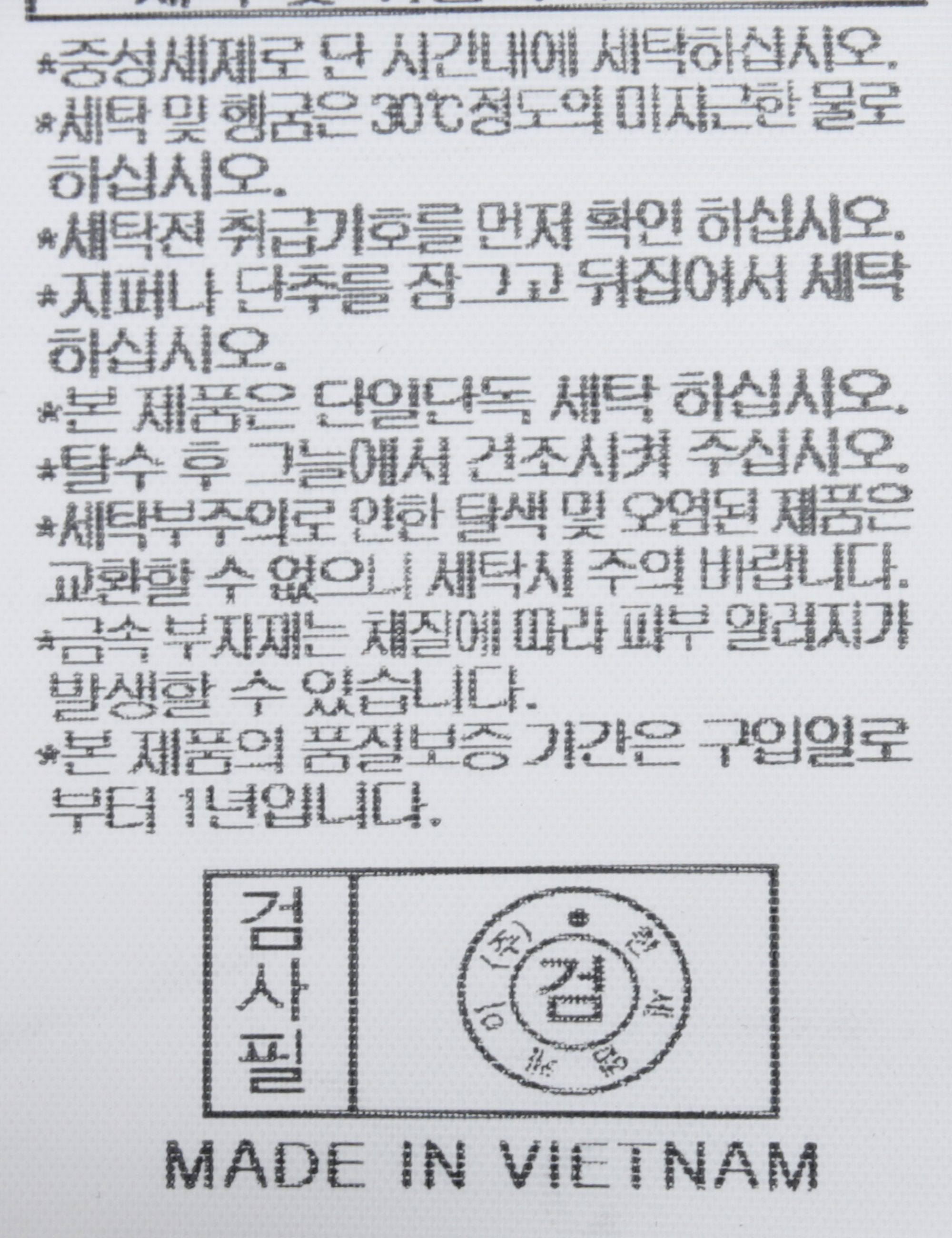 | 세탁방법 및 취급시 주의사항 | 중성세제로 단 시간내에 세탁하십시오.(케어라벨참고) |