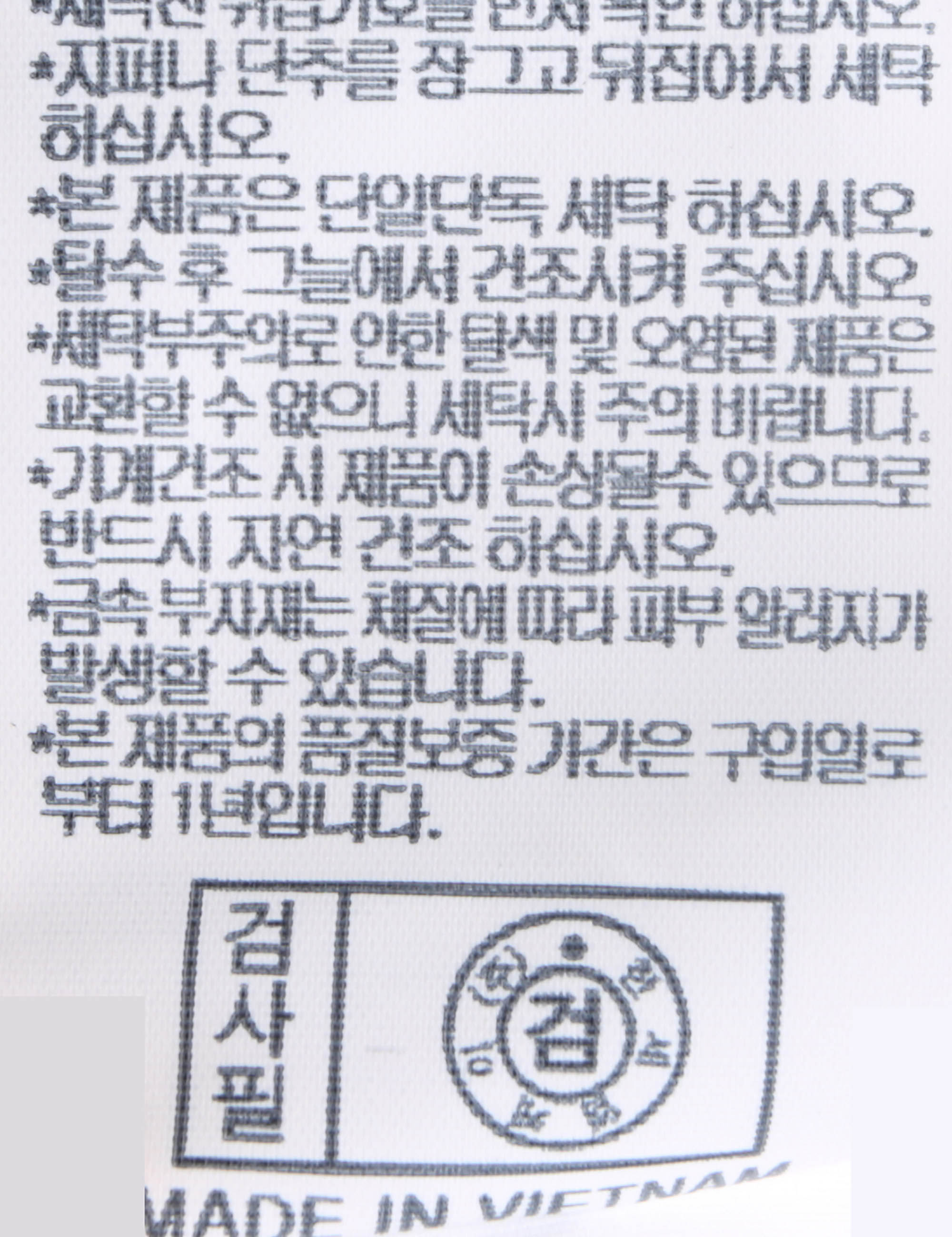 | 세탁방법 및 취급시 주의사항 | 중성세제로 단 시간내에 세탁하십시오.(케어라벨참고) |
