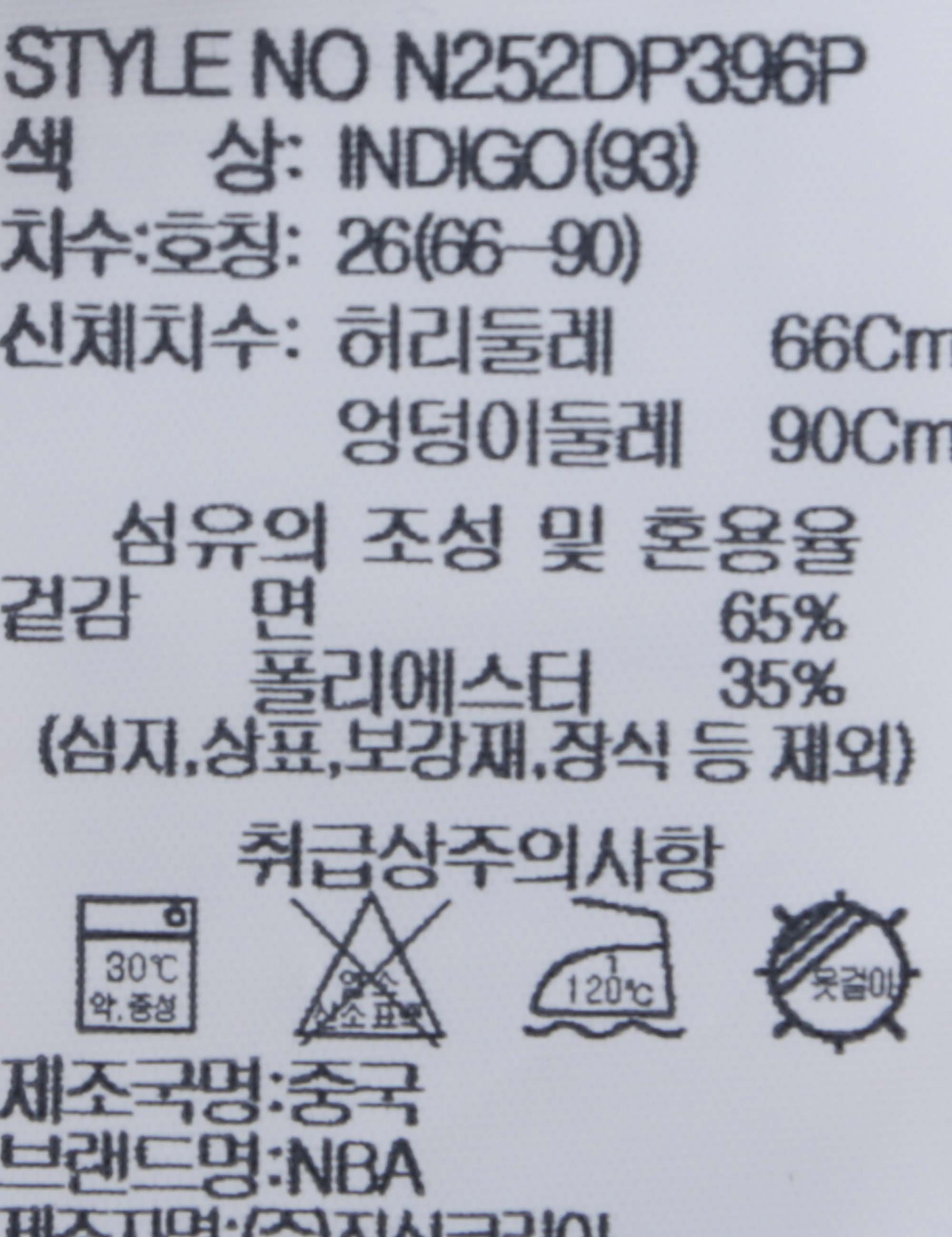 | 상품명 | NBA 경량 데님 카펜터 쇼츠(N252DP396P) |