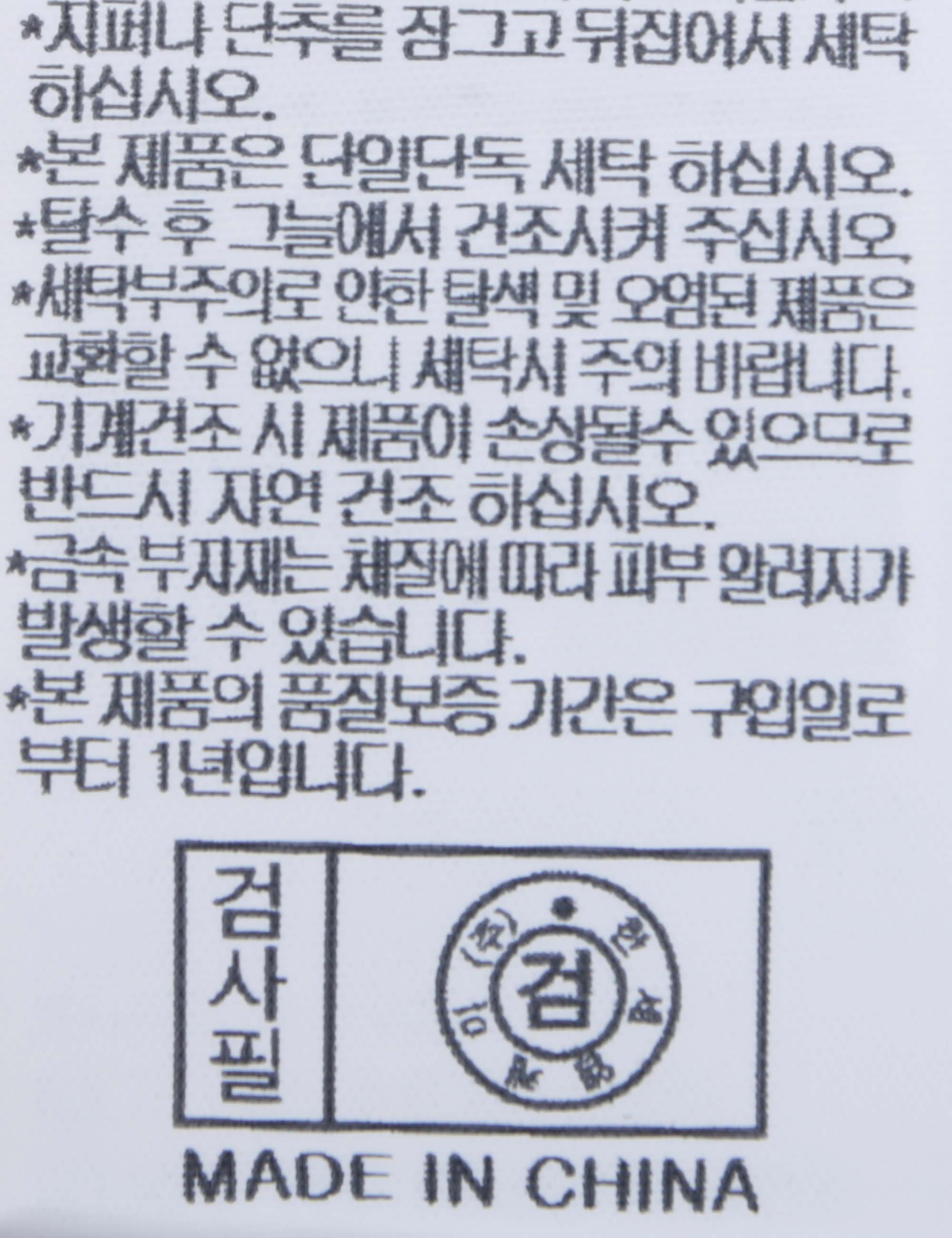 | 세탁방법 및 취급시 주의사항 | 중성세제로 단 시간내에 세탁하십시오.(케어라벨참고) |