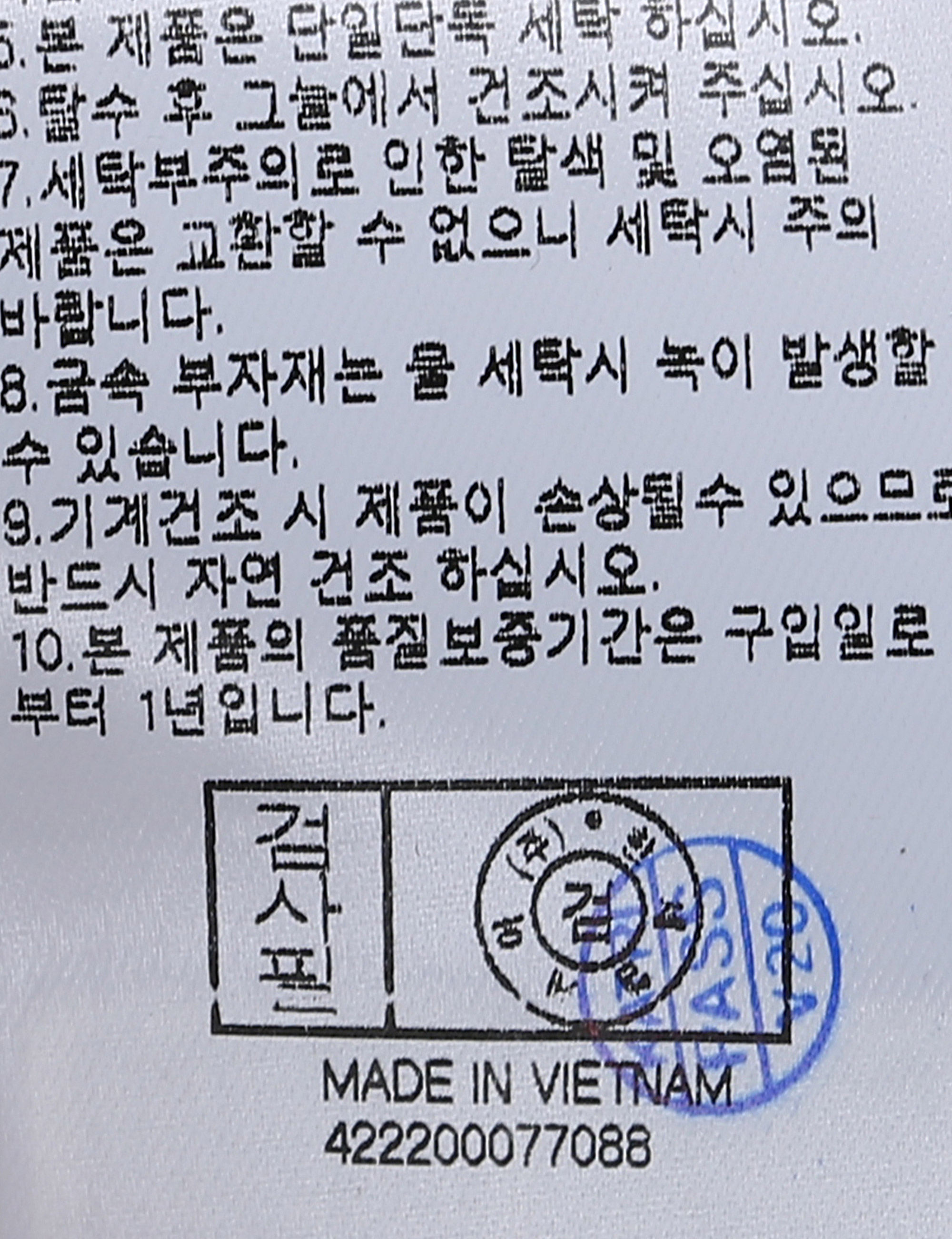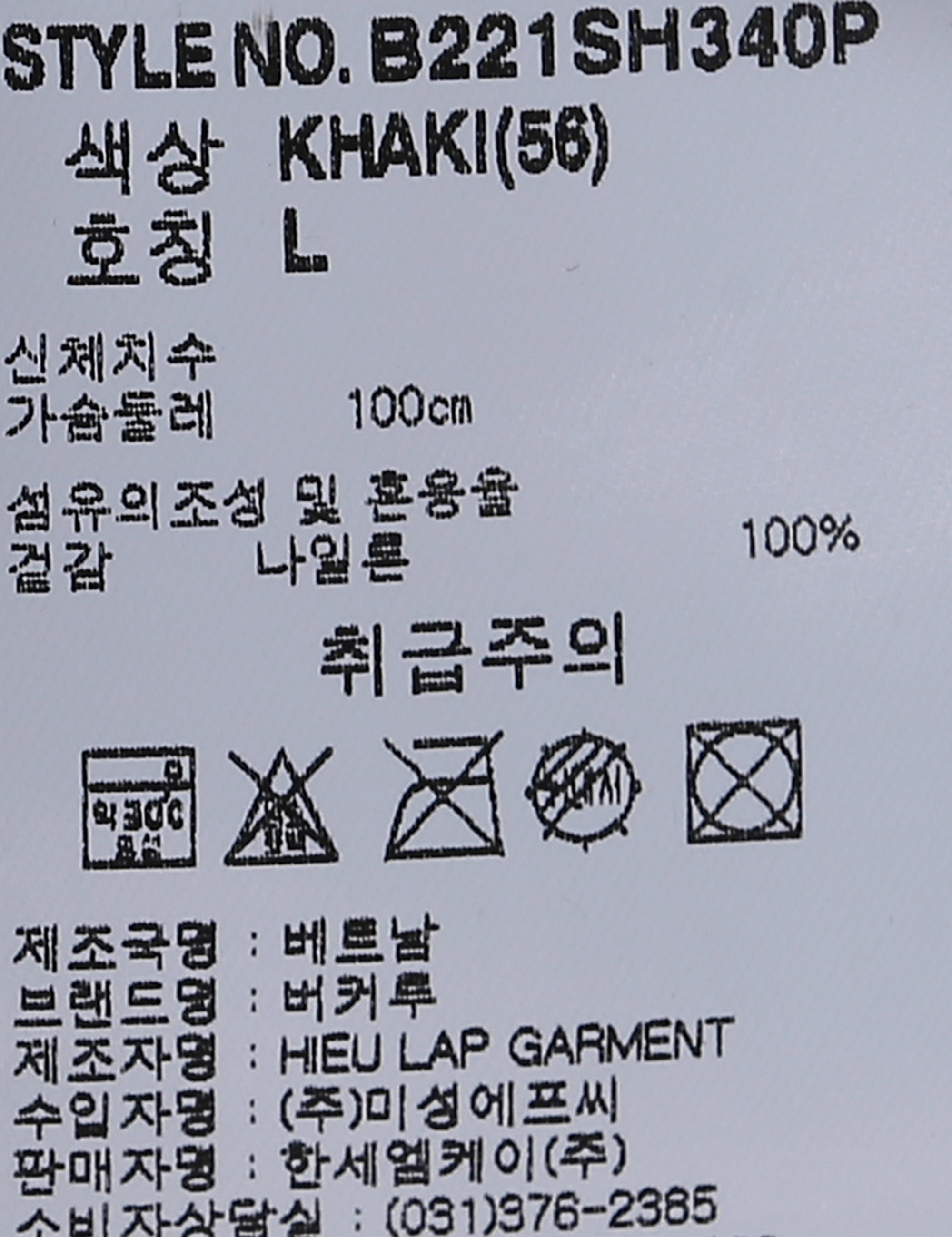 | 세탁방법 및 취급시 주의사항 | 중성세제로 단 시간내에 세탁하십시오.(케어라벨참고) |