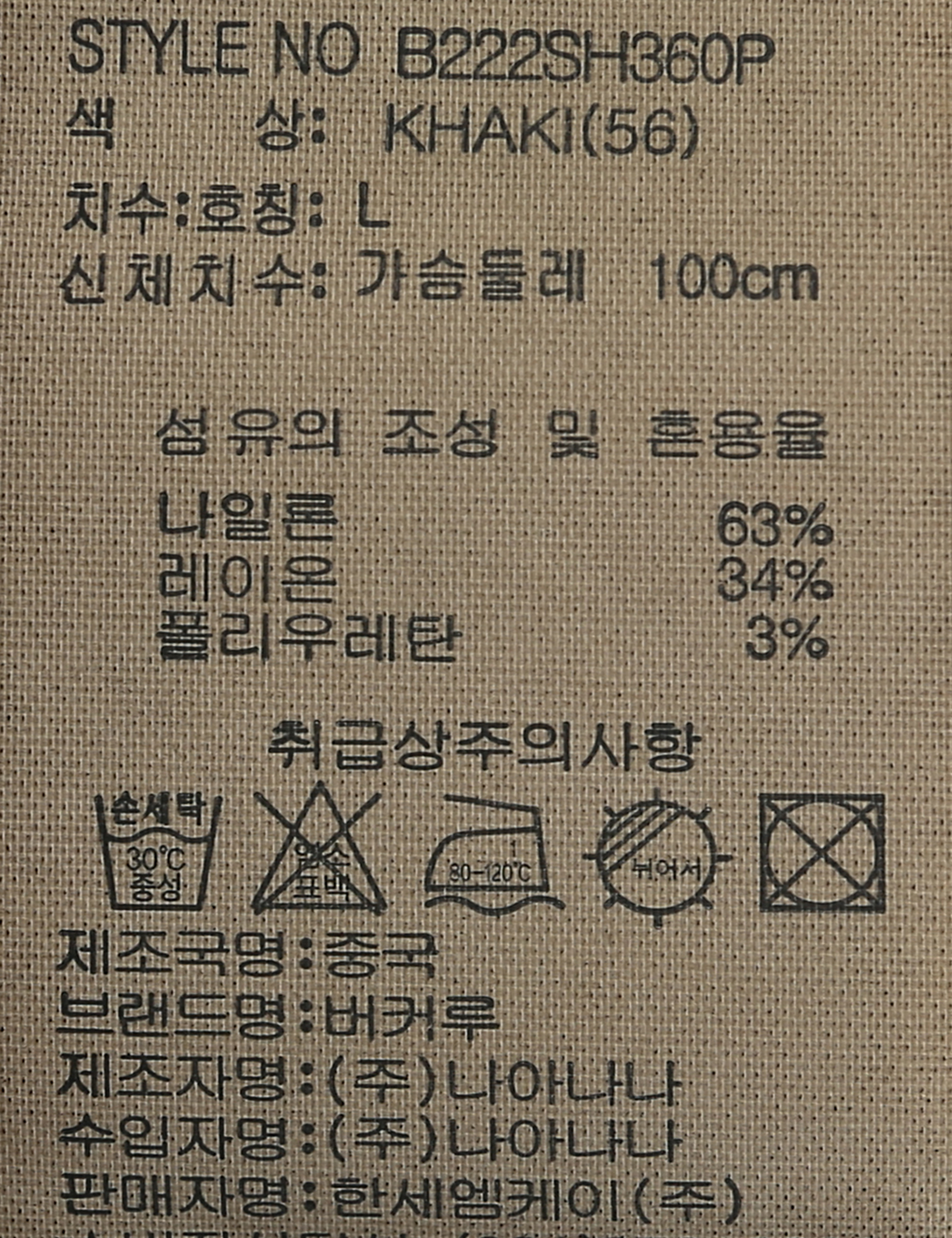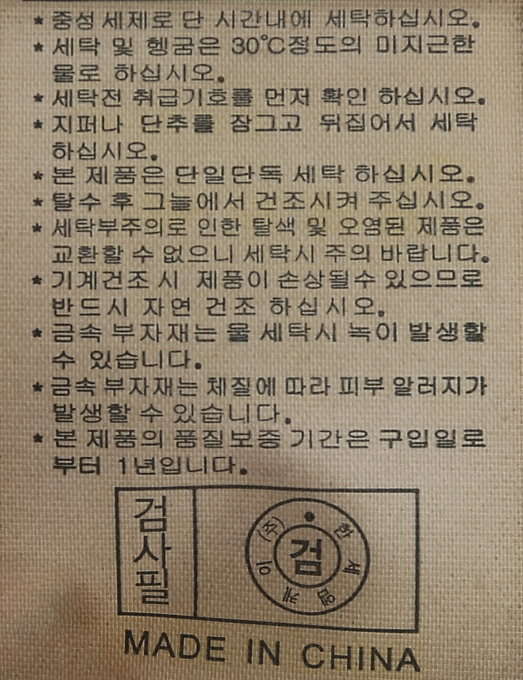 | 세탁방법 및 취급시 주의사항 | 본 제품은 손세탁 하십시오.(케어라벨참고) |