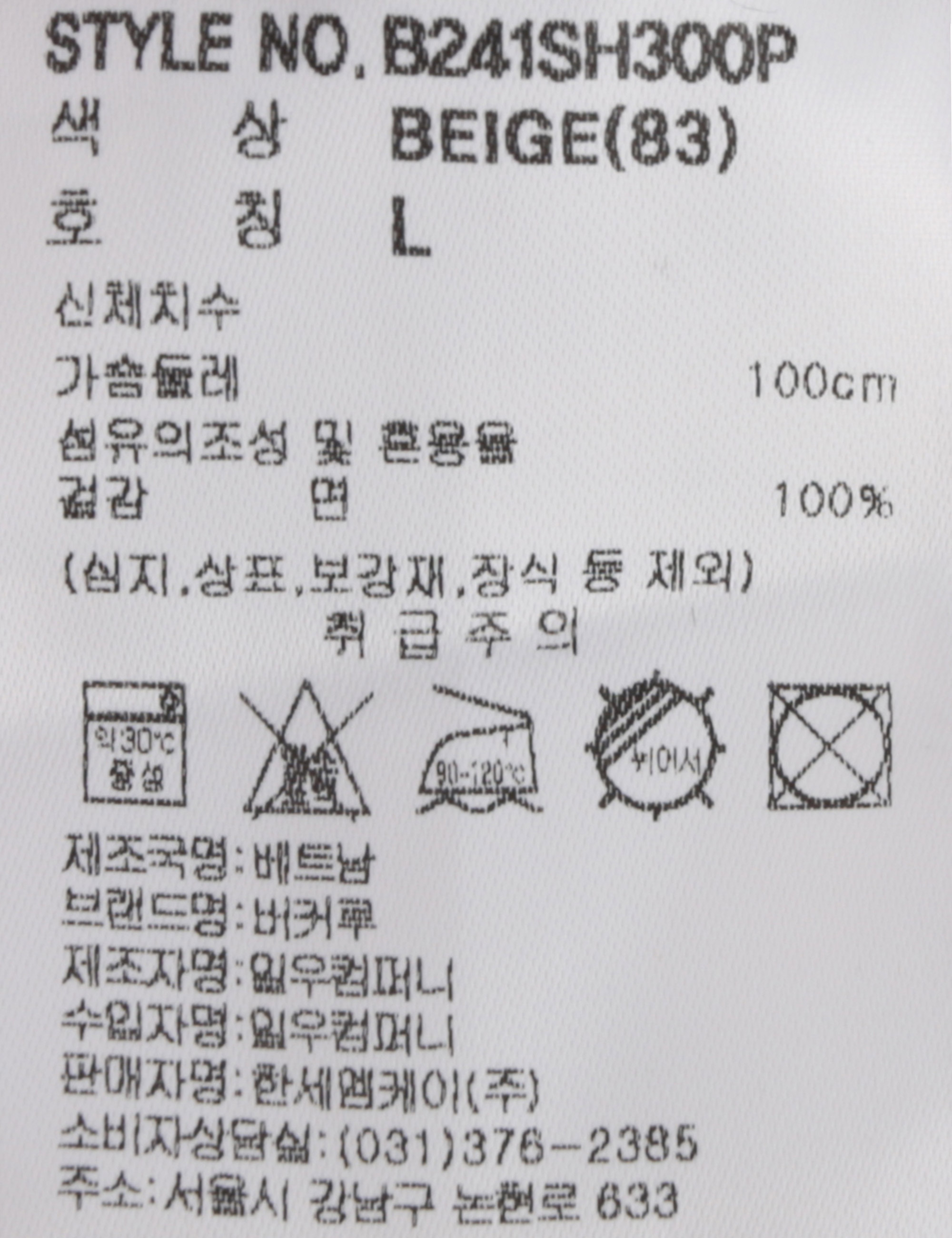 | 상품명 | 코튼 후드 체크 셔츠(B241SH300P) |