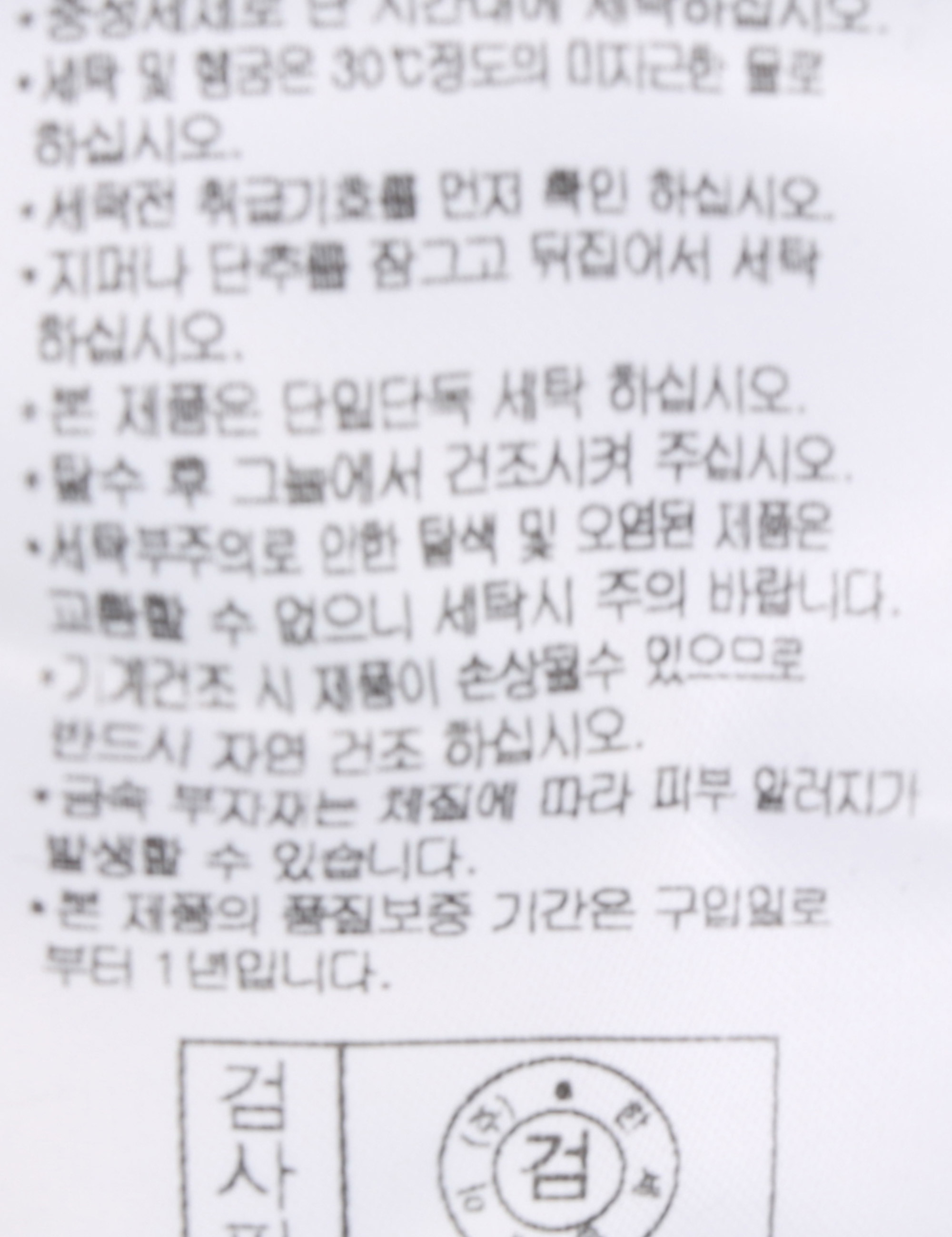 | 세탁방법 및 취급시 주의사항 | 중성세제로 단 시간내에 세탁하십시오.(케어라벨참고) |