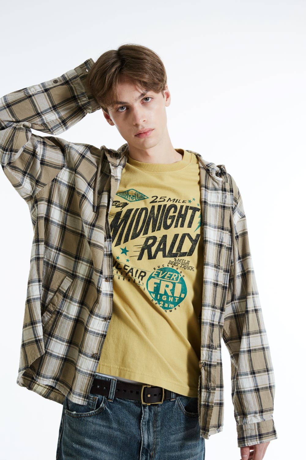 *여유있는 실루엣의 후드 셔츠로 오픈하여 셔켓으로 코디하기도 용이하며
