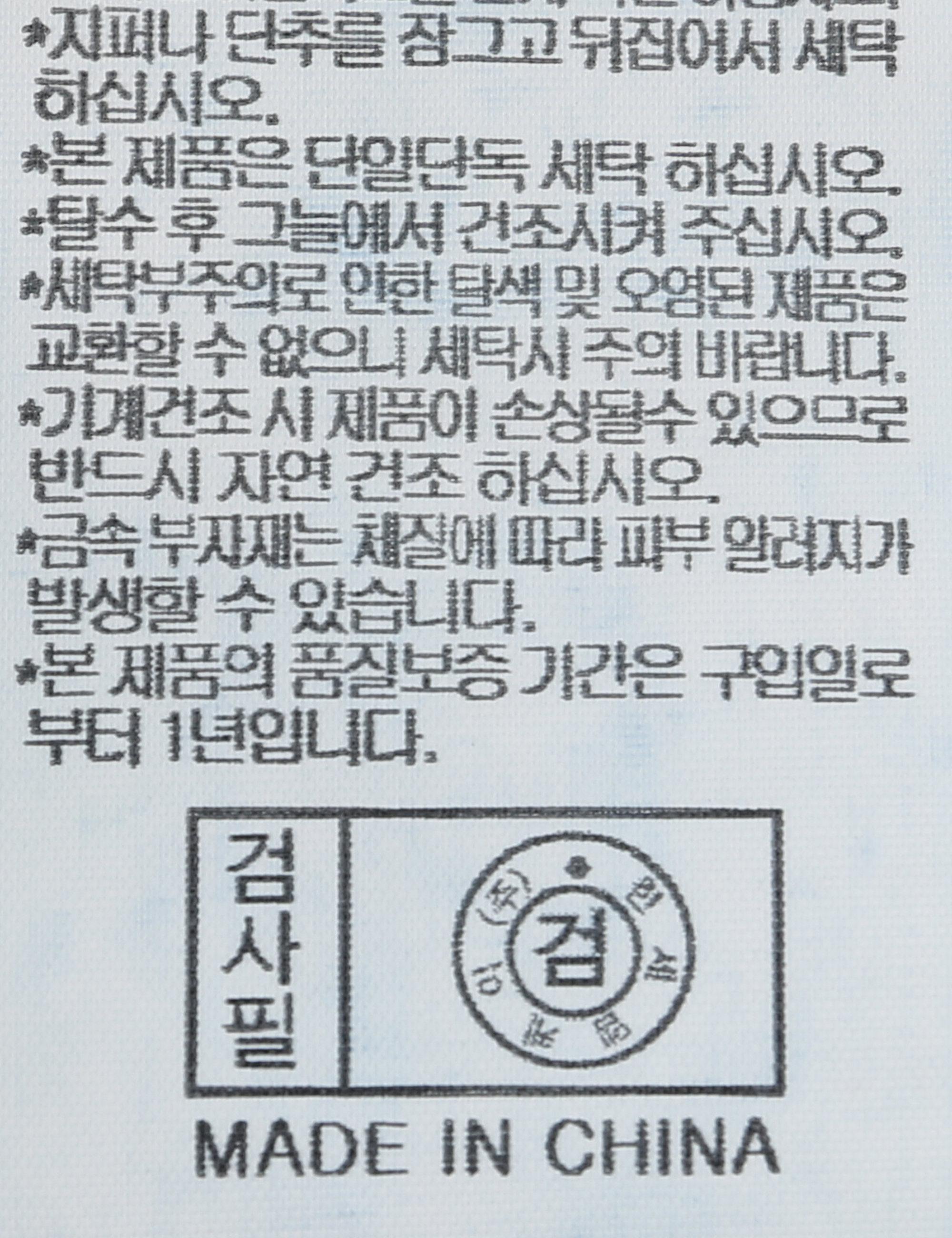 | 세탁방법 및 취급시 주의사항 | 중성세제로 단 시간내에 세탁하십시오.(케어라벨참고) |