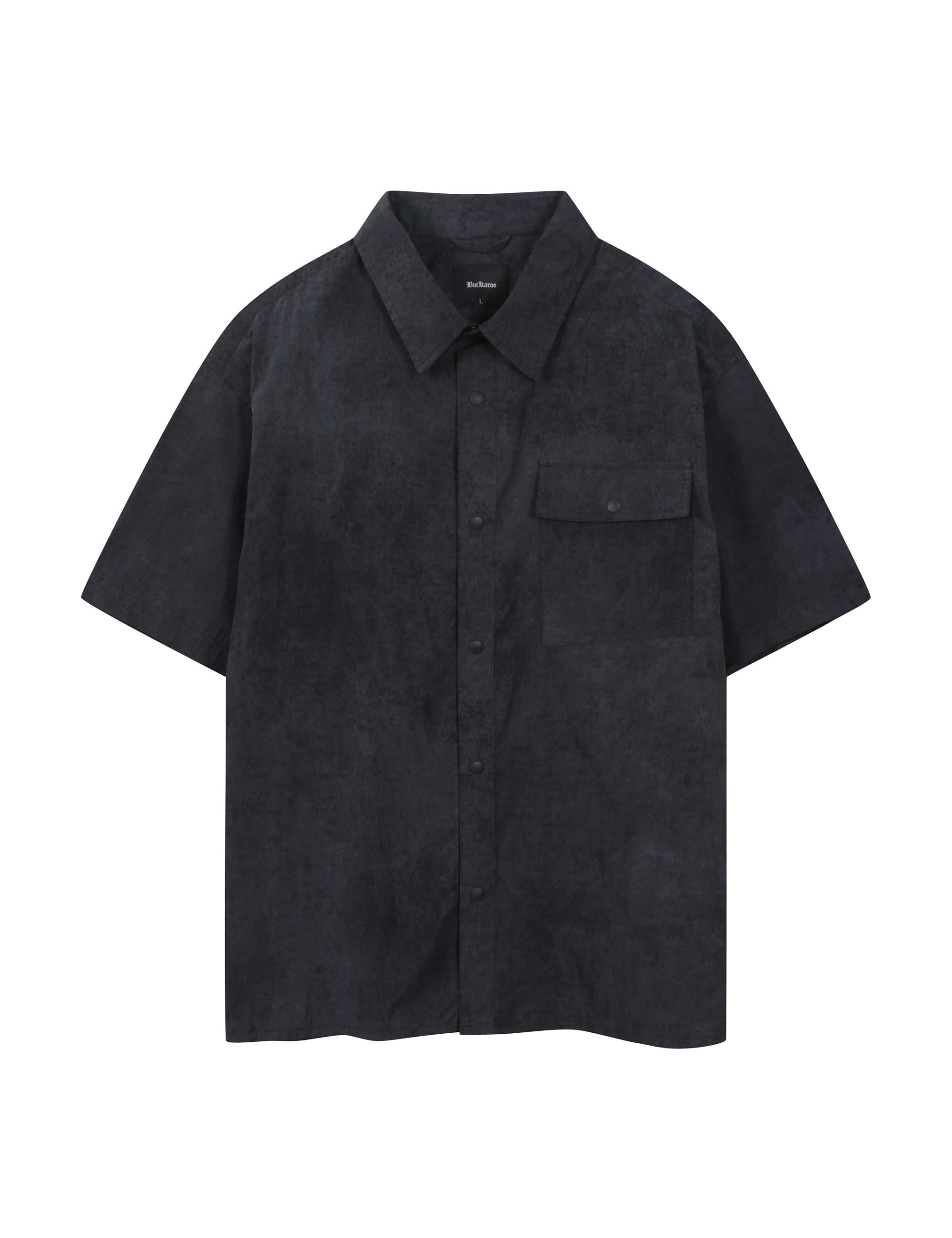 초경량 나일론 소재와 피그먼트 디지털 프린트로 빈티지한 무드를 완성한 남성 반팔 셔츠