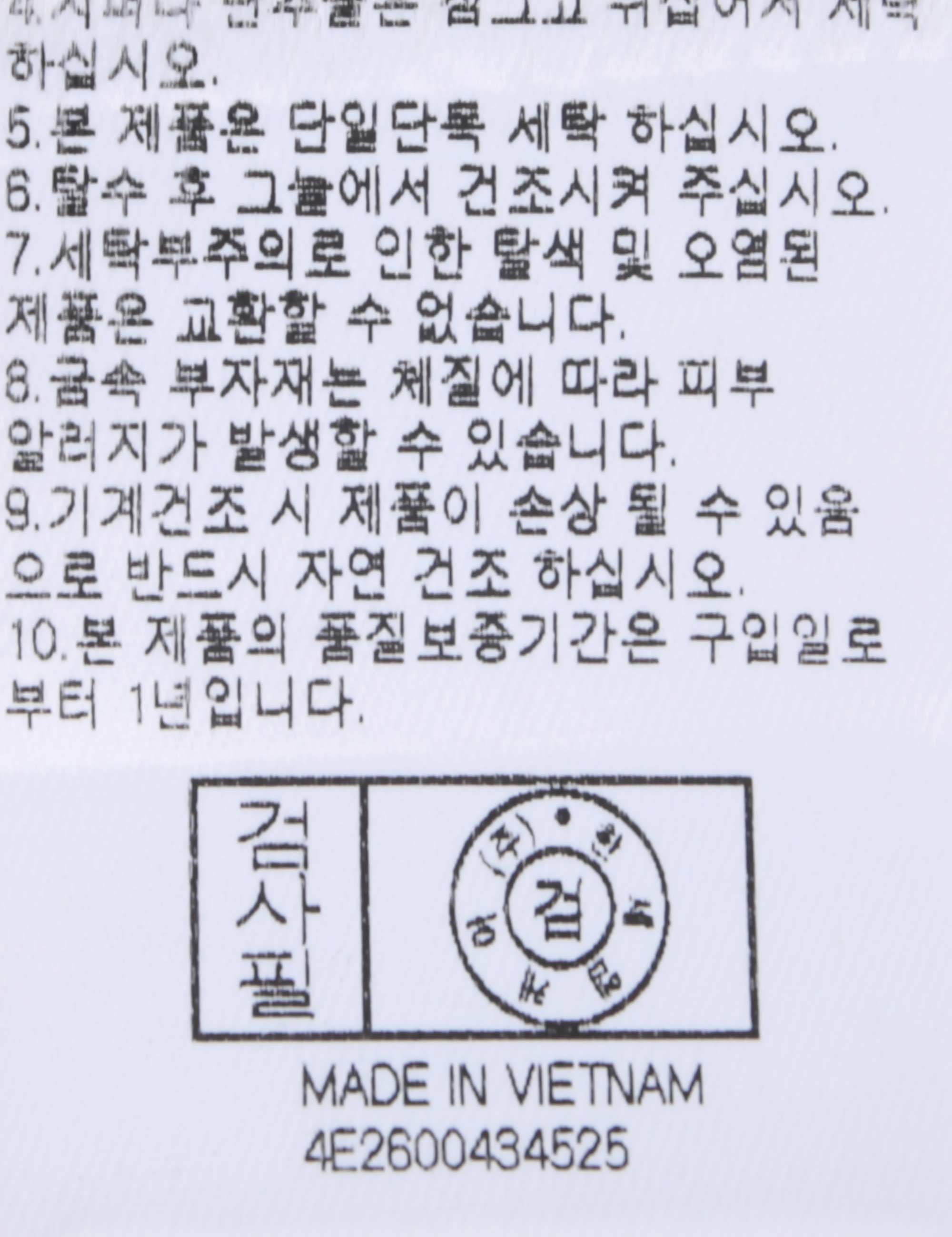 | 세탁방법 및 취급시 주의사항 | 본 제품은 손세탁 하십시오.(케어라벨참고) |