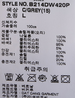 브랜드 홈 바로가기| 제품소재 | [겉감]나일론100% [배색1]폴리에스터100% [배색2]폴리에스터95% 폴리우레탄5% [안감]폴리에스터100% [충전재1]오리솜털80% 오리깃털20% [충전재2]폴리에스터100% |