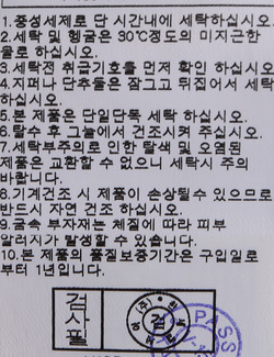| 세탁방법 및 취급시 주의사항 | 본 제품은 손세탁 하십시오.(케어라벨참고) |