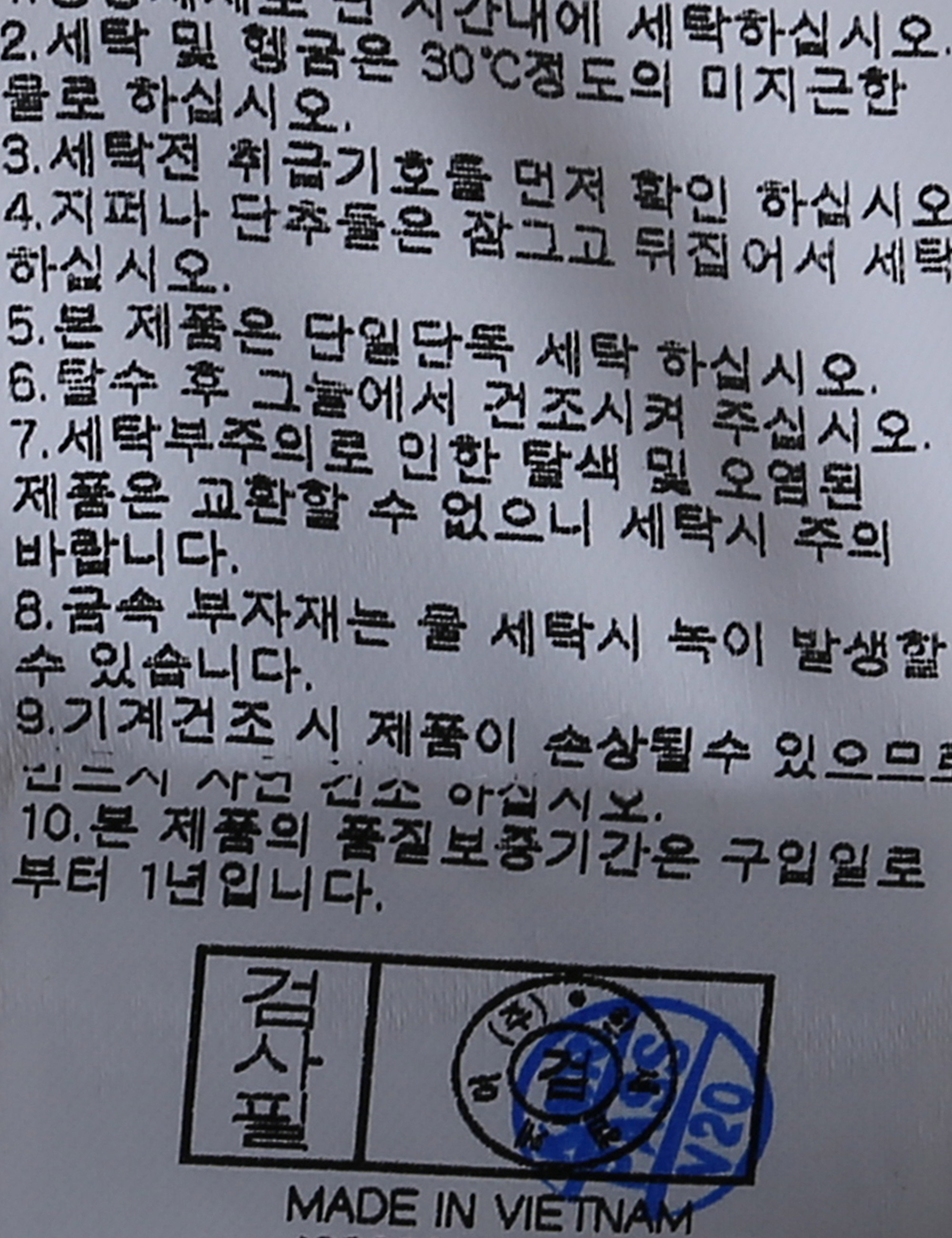 세탁방법 및 취급시 주의사항 중성세제로 단 시간내에 세탁하십시오.(케어라벨참고)