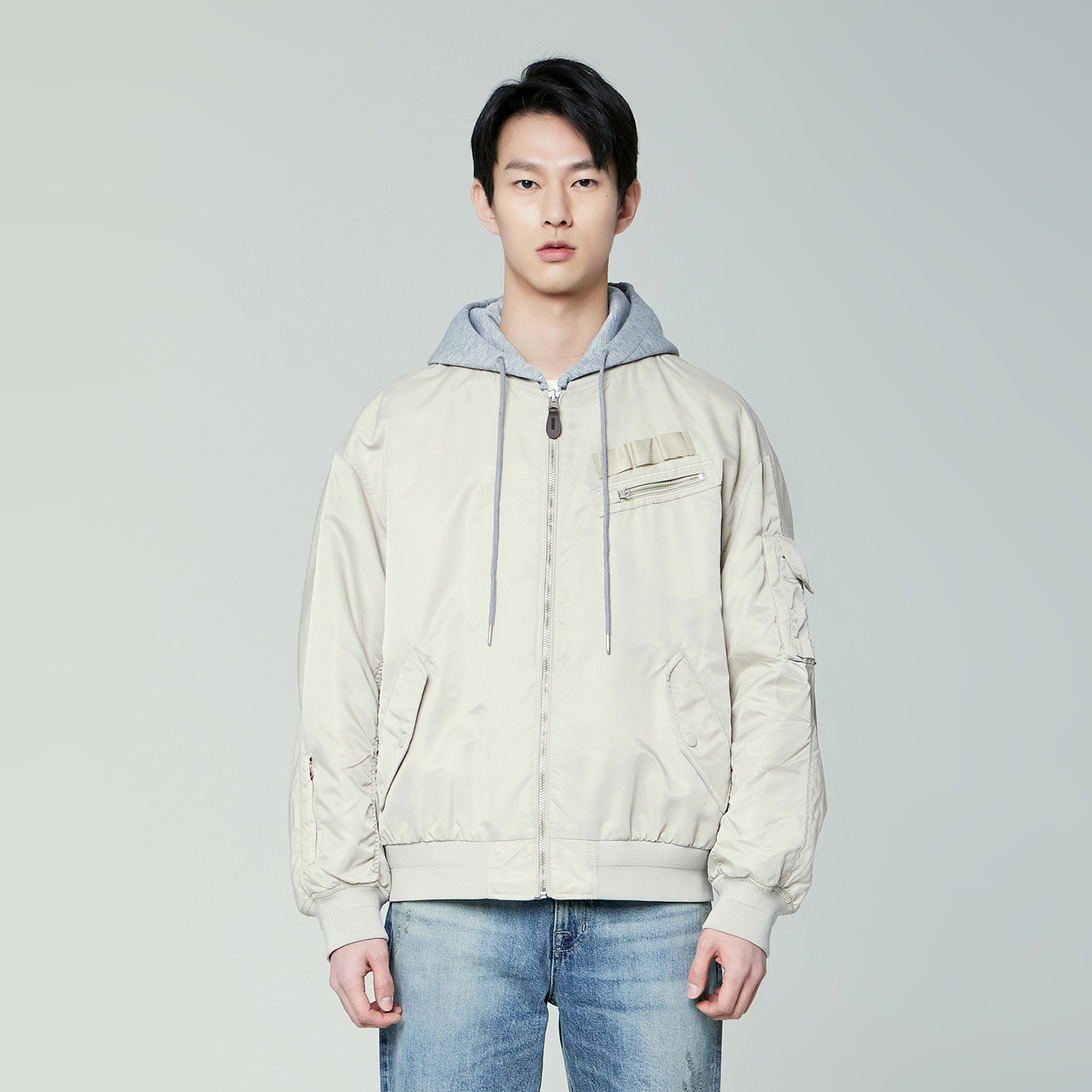 남성 나일론 후드레이어드 패딩점퍼(B221JP320P)