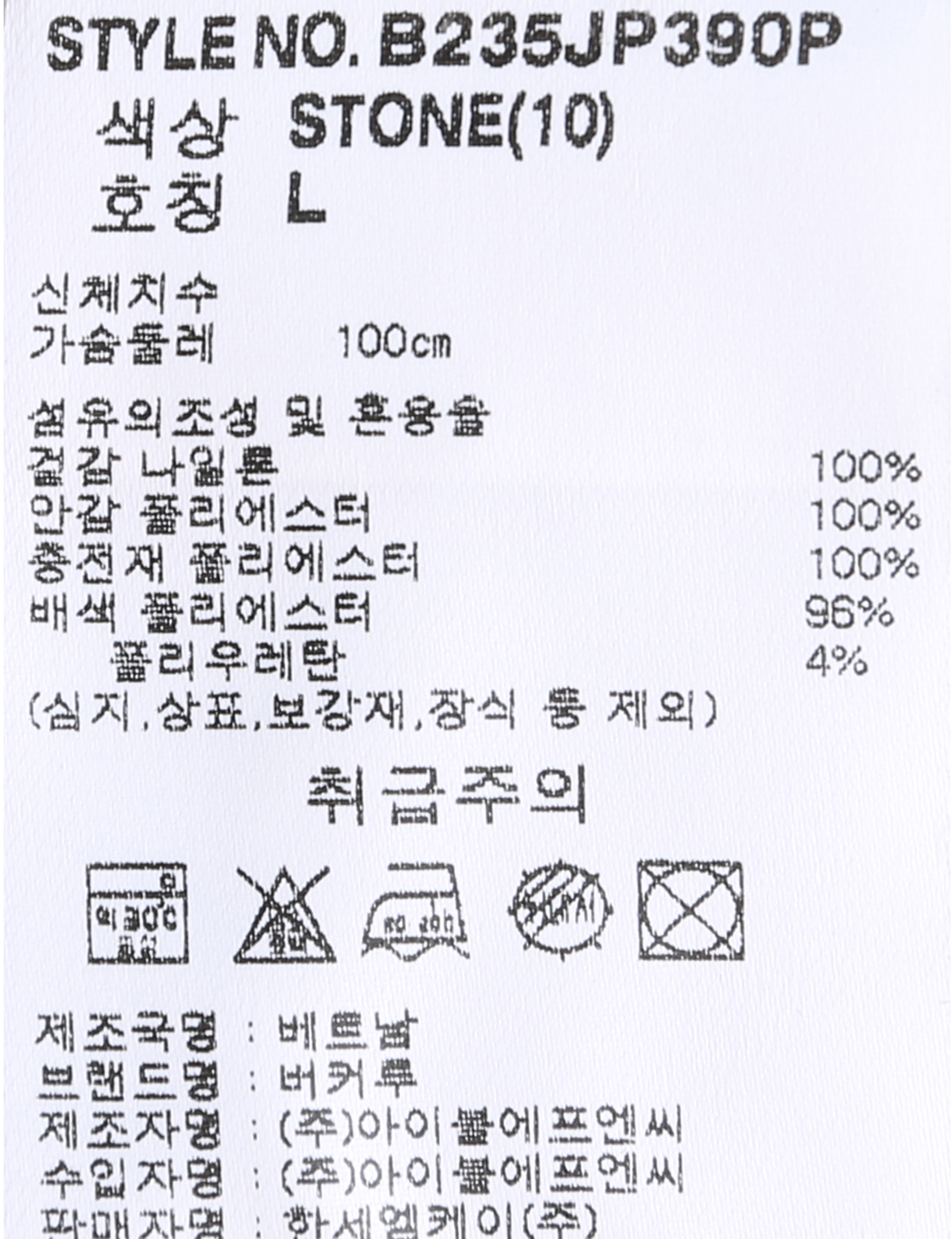 브랜드 홈 바로가기| 제품소재 | [겉감]나일론100% [배색]폴리에스터96% 폴리우레탄4% [안감]폴리에스터100% [충전재]폴리에스터100% |