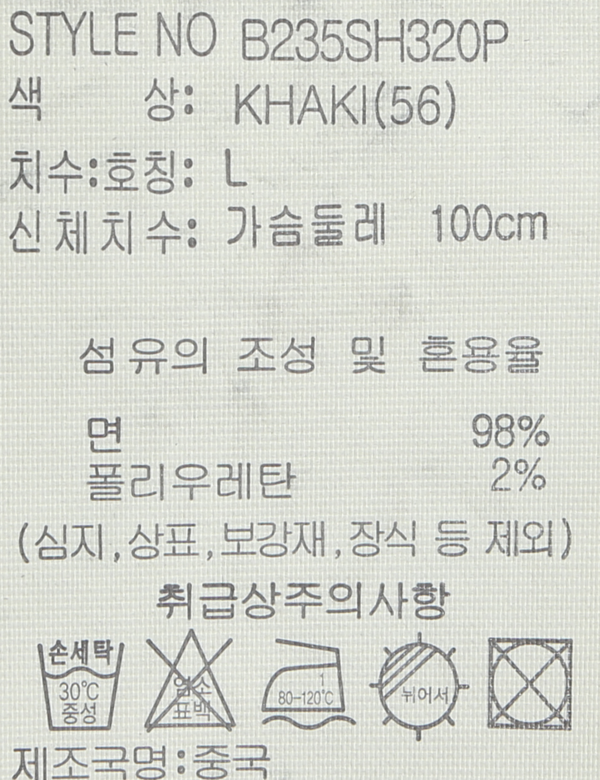 | 상품명 | 남성 코튼 루즈핏 셔켓(B235SH320P) |