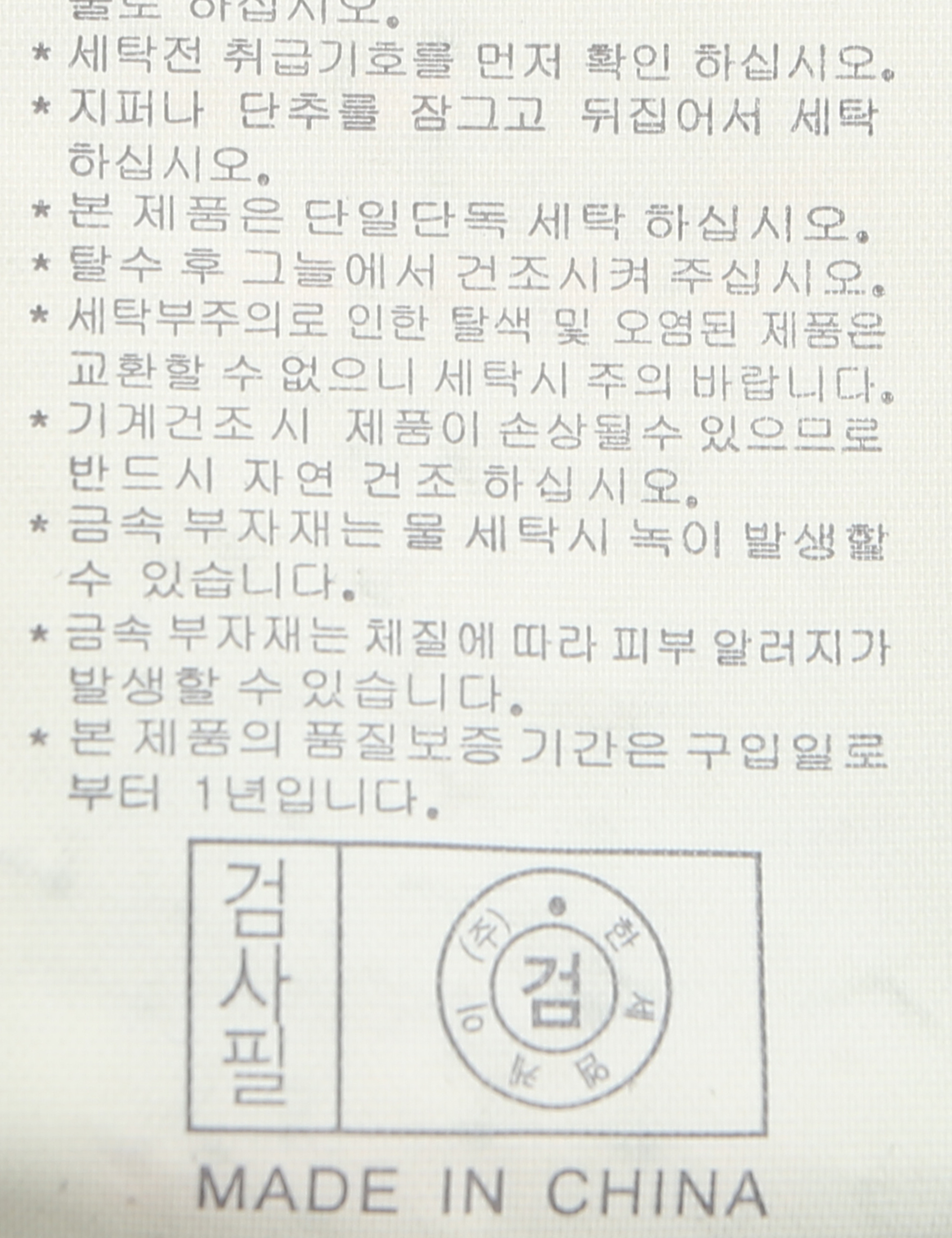 | 세탁방법 및 취급시 주의사항 | 본 제품은 손세탁 하십시오.(케어라벨참고) |