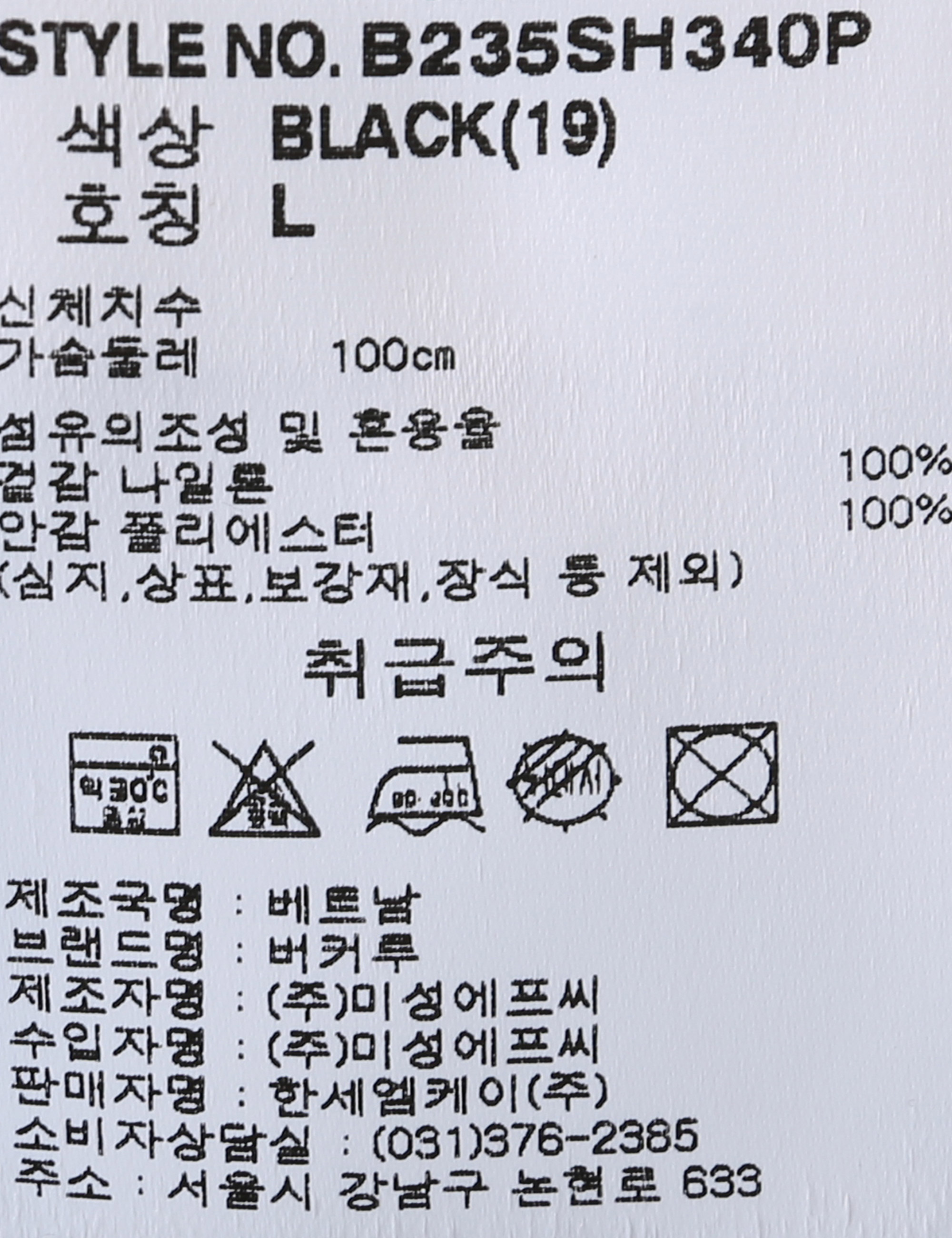 제품소재 [겉감]나일론100% [안감]폴리에스터100%
